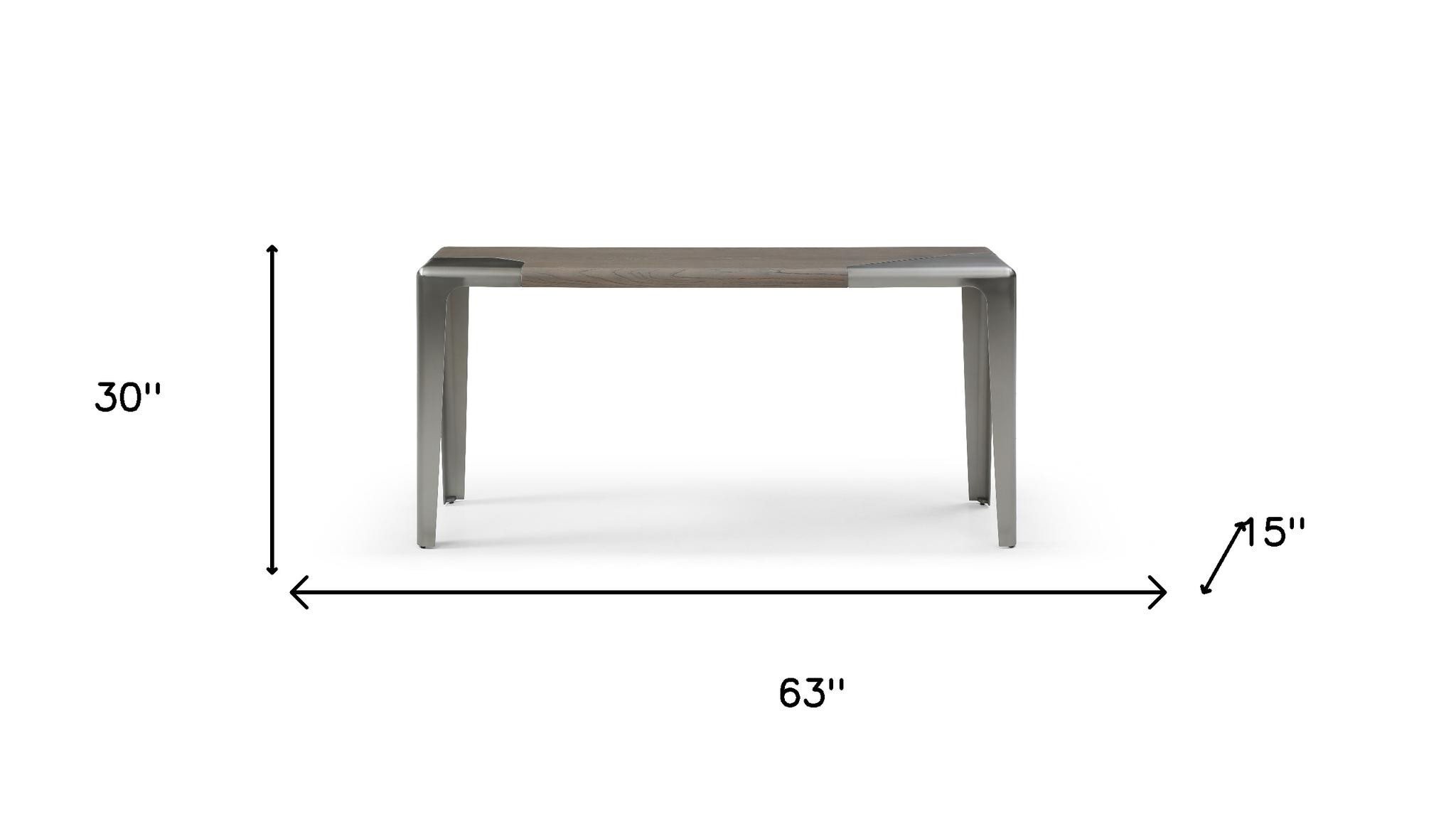 This 63-inch ash gray and silver solid wood and stainless steel console table can provide a variety of practical functions such as providing extra storage space, serving as a display area for decorative items or acting as a catch-all for keys, mail, and other small items. This rectangular table is ideal for up against the wall, can free stand in a room, or sit behind the sofa perfectly. This unit has a ash gray genuuine hardwood tabletop. In addition to a great top, our console table has a stainless steel four leg base, meaning that it is well-built and secure. Ideal for living rooms, bedrooms, home offices, and lounge areas, this console table is not only good looking but multi-functional and practical addition to your space. 30.00-inch h x 63.00-inch w x 15.00-inch d.