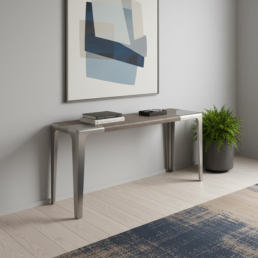 wood stainless steel console table, stainless steel console table, ash gray silver solid wood, solid wood stainless steel console, gray silver solid wood |