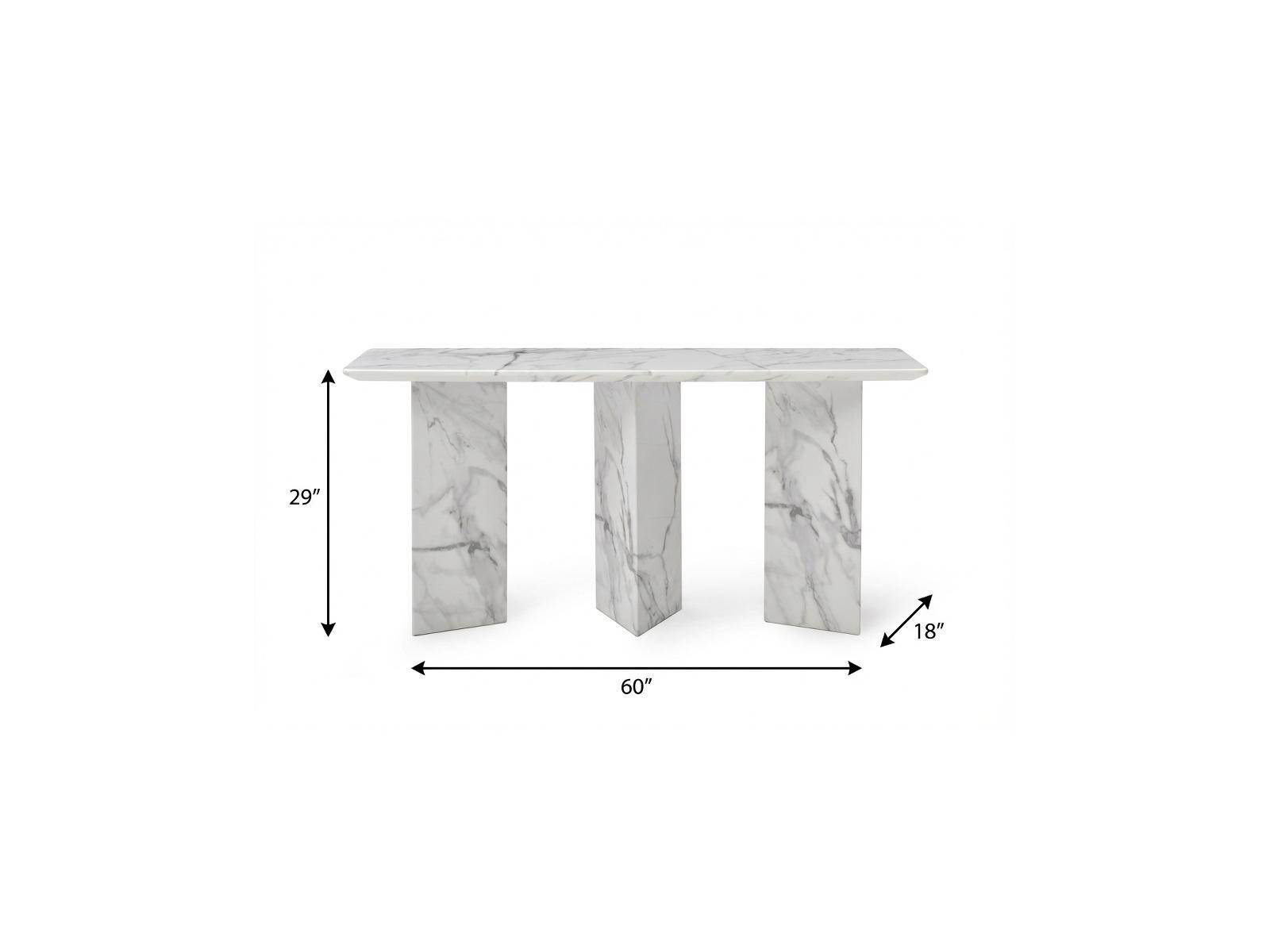 Don't settle for a boring entryway, upgrade your home with our 60-inch white genuine marble three leg console table today. This versatile table is a classic rectangular shape, which will easily fit into most any space in your home. The white top of this genuine marble table will add beauty to any room with its alluring and distinctive veining of the stone. Ideal for living rooms, bedrooms, home offices, and lounge areas, this console table is not only good looking but multi-functional and practical addition to your space. 29.00-inch h x 60.00-inch w x 18.00-inch d.
