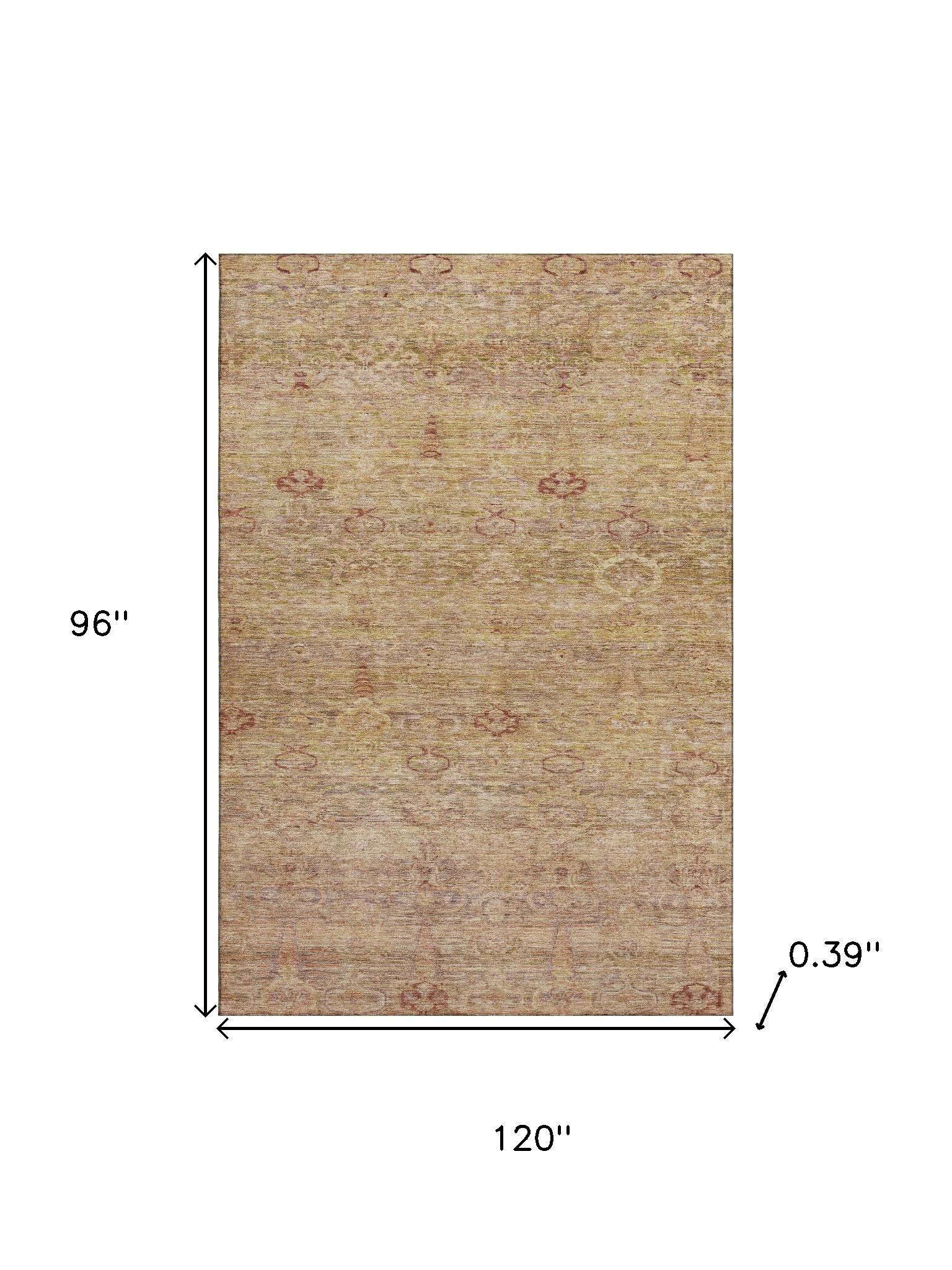 Add some artistry to your room with this 8-foot x 10-foot coral and taupe abstract washable area rug with uv protection. Ideal for spaces with kids and pets, this rug is stain resistant to help repel dirt and spilled liquids. Built to last, this rug crafted from polyester fibers is known for its durability and long lasting appeal. Rugs are a great way to showcase your style, hide imperfections, warm your home and reduce noise. This larger sized, traditional styled rug is ready to create a focal point or statement piece in your room. 96.00-inch h x 120.00-inch w x 0.39-inch d.