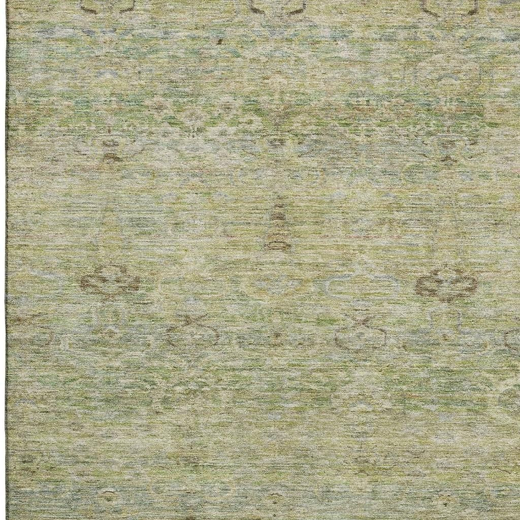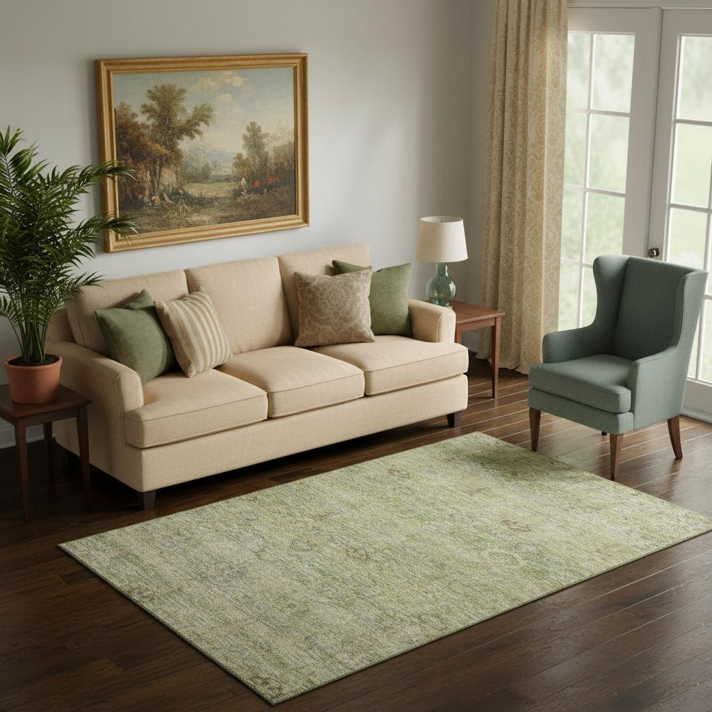 Add some artistry to your room with this 5-foot x 8-foot green and beige abstract washable area rug with uv protection. Ideal for spaces with kids and pets, this rug is stain resistant to help repel dirt and spilled liquids. Built to last, this rug crafted from polyester fibers is known for its durability and long lasting appeal. Rugs are a great way to showcase your style, hide imperfections, warm your home and reduce noise. This larger sized, traditional styled rug is ready to create a focal point or statement piece in your room. 60.00-inch h x 90.00-inch w x 0.39-inch d.