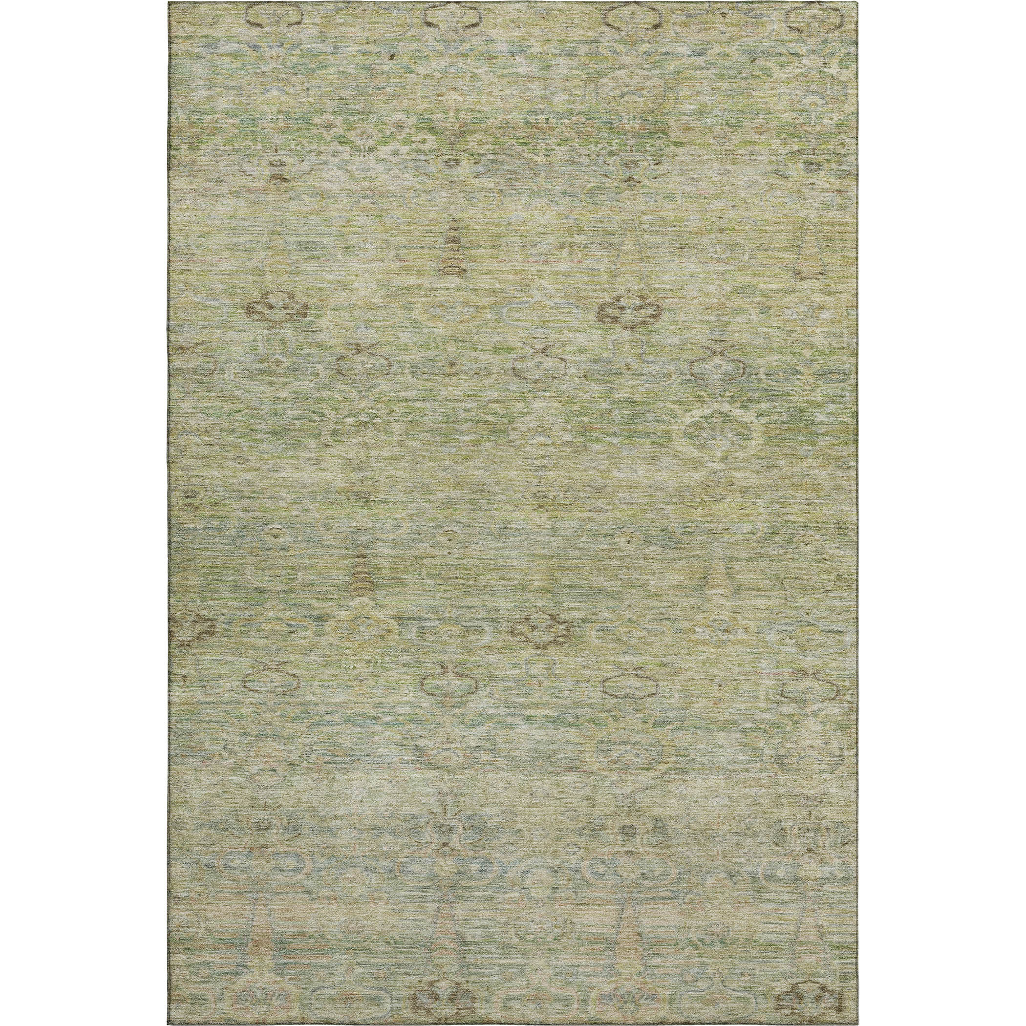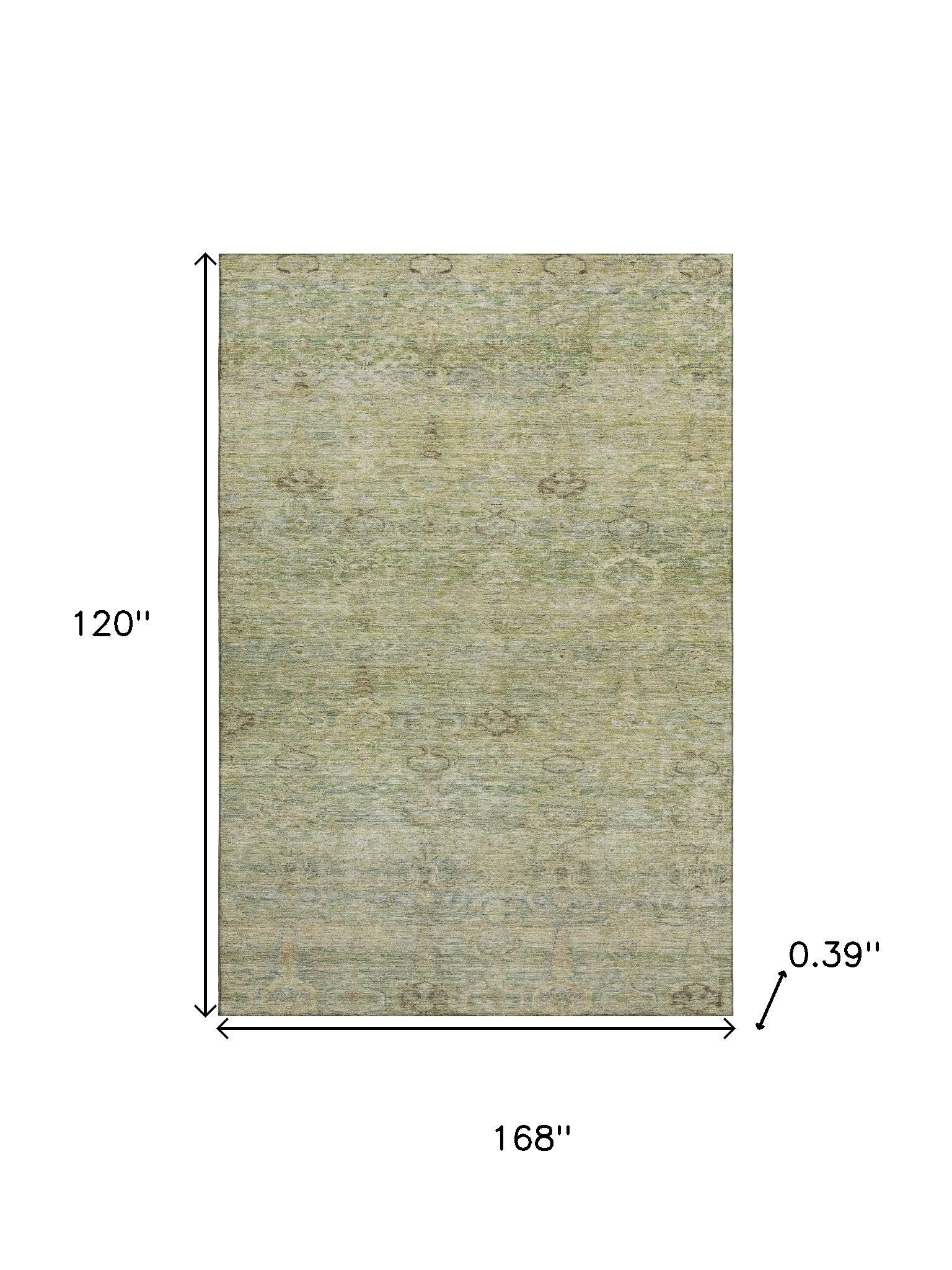 Add some artistry to your room with this 10-foot x 14-foot green and beige abstract washable area rug with uv protection. Ideal for spaces with kids and pets, this rug is stain resistant to help repel dirt and spilled liquids. Built to last, this rug crafted from polyester fibers is known for its durability and long lasting appeal. Rugs are a great way to showcase your style, hide imperfections, warm your home and reduce noise. This larger sized, traditional styled rug is ready to create a focal point or statement piece in your room. 120.00-inch h x 168.00-inch w x 0.39-inch d.