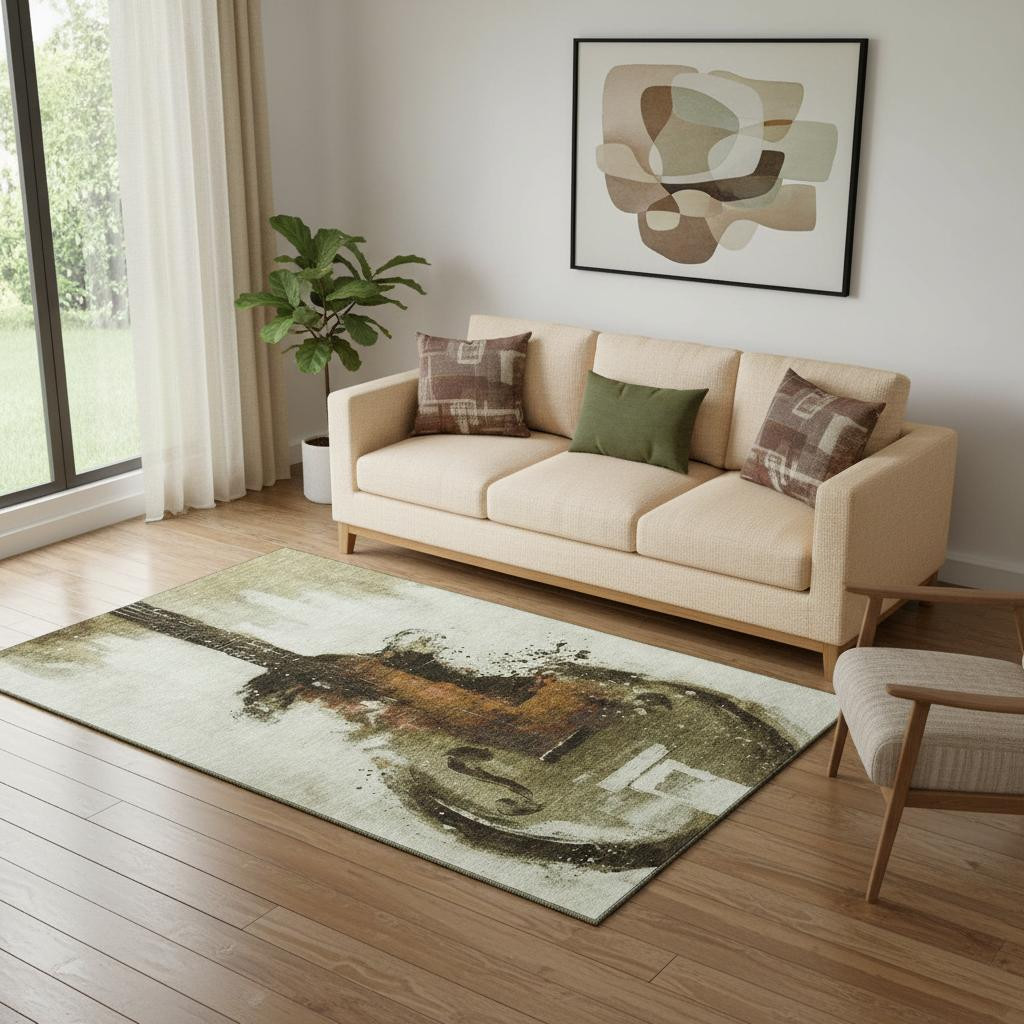 Add some artistry to your room with this 5-foot x 8-foot brown and charcoal abstract washable area rug with uv protection. Ideal for spaces with kids and pets, this rug is stain resistant to help repel dirt and spilled liquids. Built to last, this rug crafted from polyester fibers is known for its durability and long lasting appeal. Rugs are a great way to showcase your style, hide imperfections, warm your home and reduce noise. This larger sized, transitional styled rug is ready to create a focal point or statement piece in your room. 60.00-inch h x 90.00-inch w x 0.39-inch d.