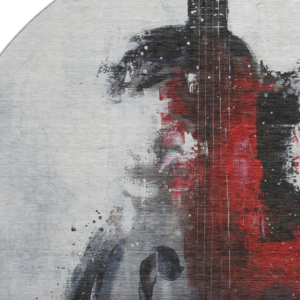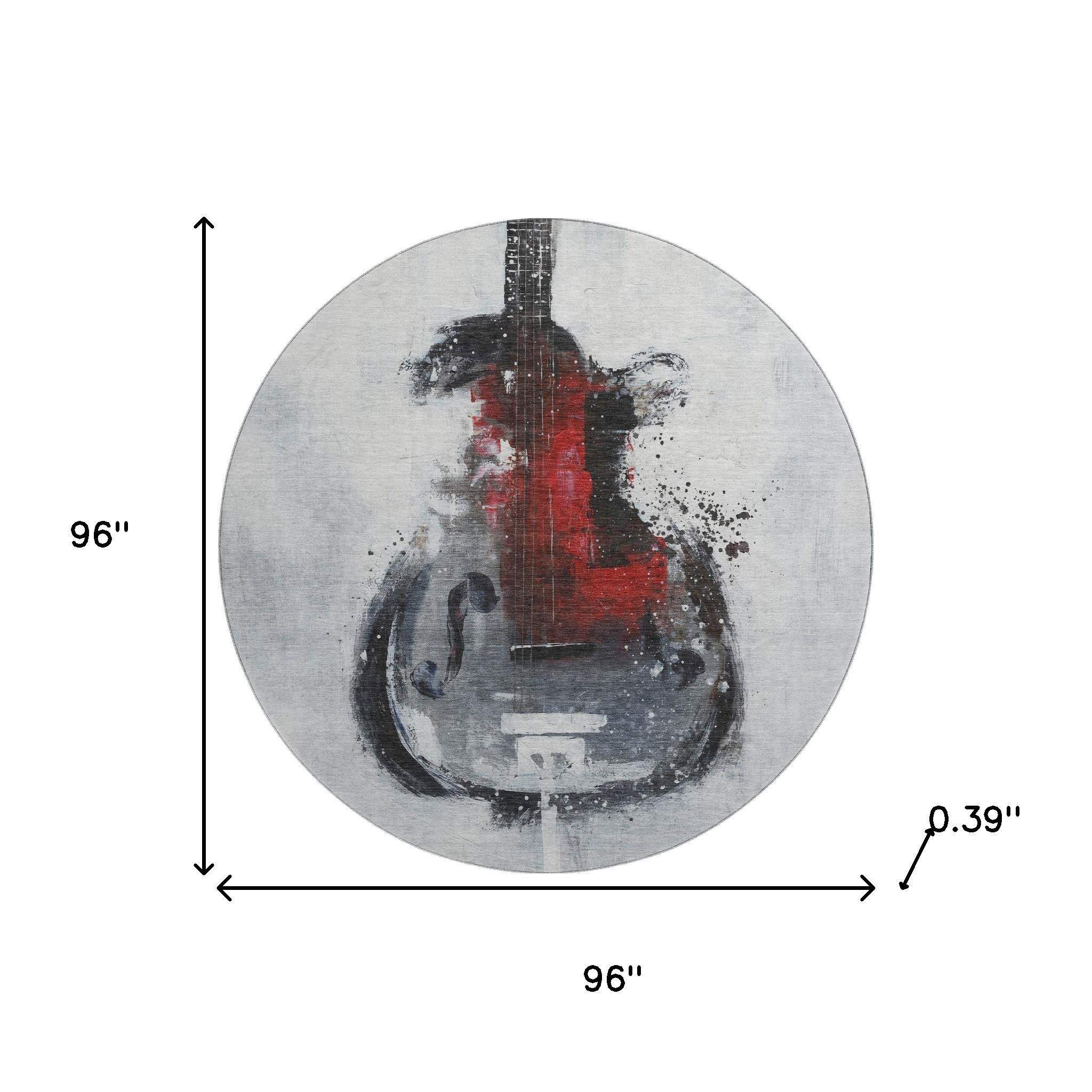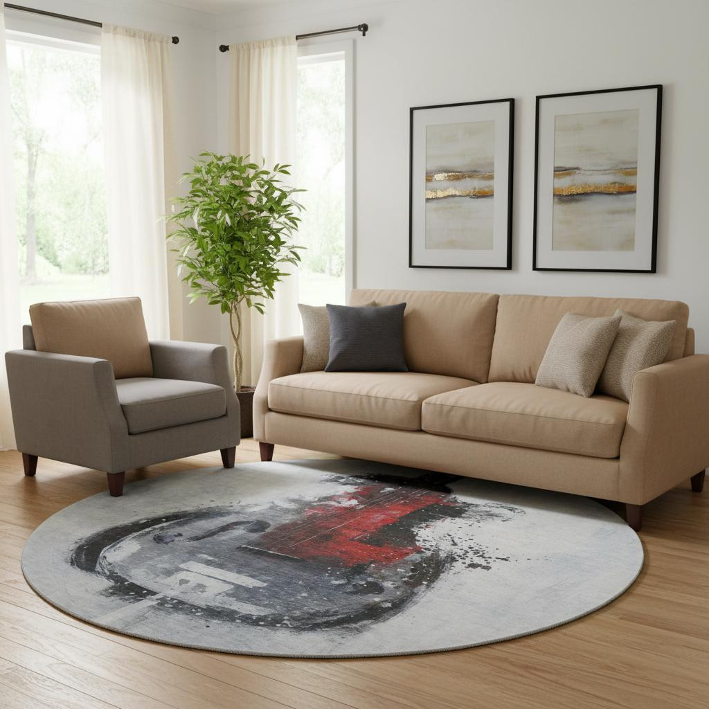 Add great coloration and comfortable texture to your space with this 8-foot gray and red abstract washable round rug with uv protection. Ideal for spaces with kids and pets, this rug is stain resistant to help repel dirt and spilled liquids. Built to last, this rug crafted from polyester fibers is known for its durability and long lasting appeal. Rugs are a great way to showcase your style, hide imperfections, warm your home and reduce noise. This larger sized, transitional styled rug is ready to create a focal point or statement piece in your room. 96.00-inch h x 96.00-inch w x 0.39-inch d.