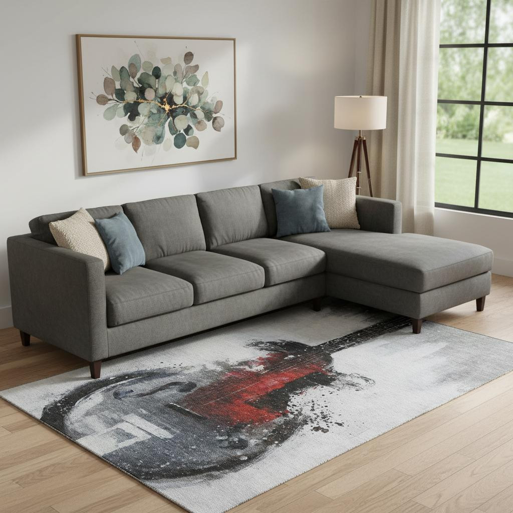 This 8-foot x 10-foot gray and red abstract washable area rug with uv protection, is a great way to add warmth to a room. Ideal for spaces with kids and pets, this rug is stain resistant to help repel dirt and spilled liquids. Built to last, this rug crafted from polyester fibers is known for its durability and long lasting appeal. Rugs are a great way to showcase your style, hide imperfections, warm your home and reduce noise. This larger sized, transitional styled rug is ready to create a focal point or statement piece in your room. 96.00-inch h x 120.00-inch w x 0.39-inch d.