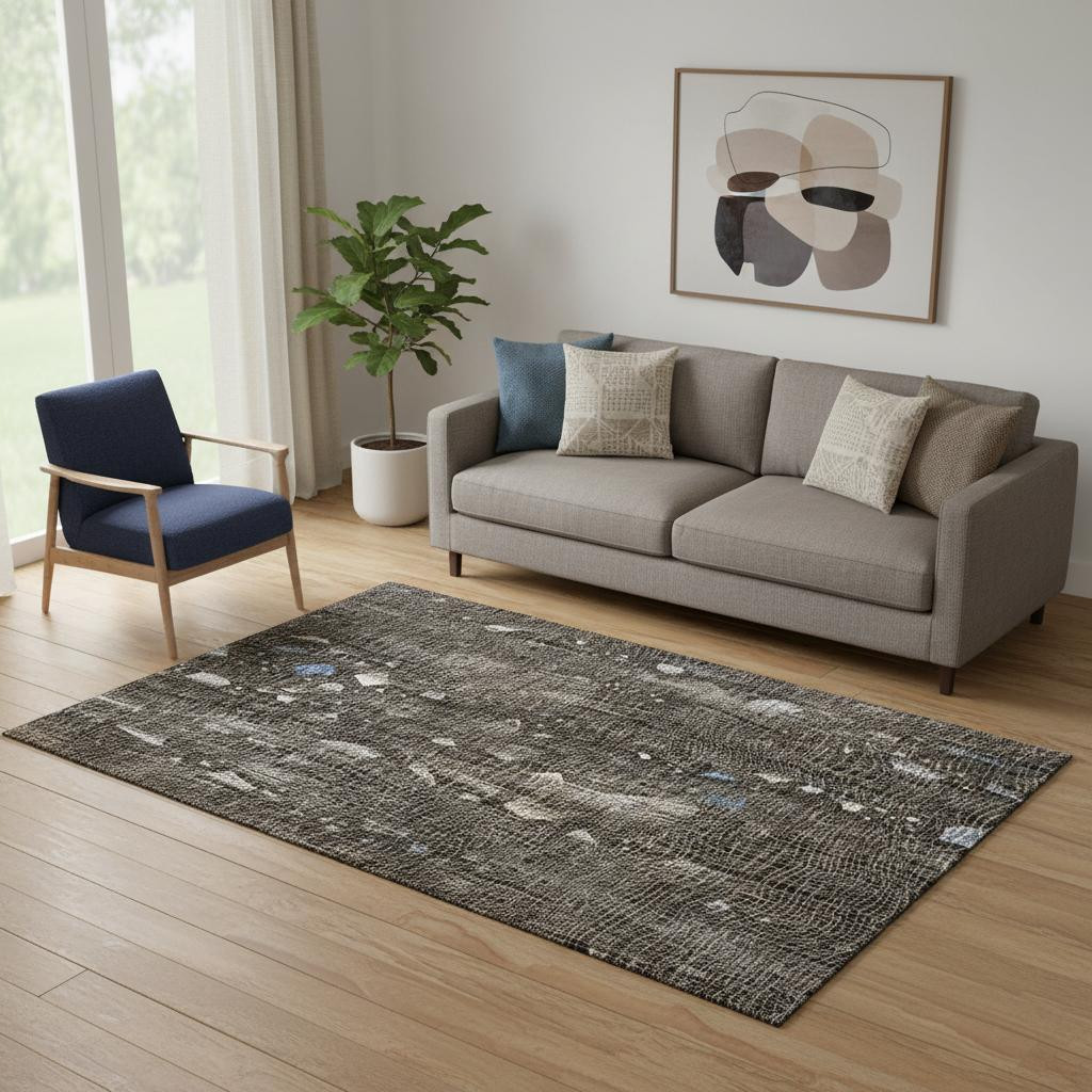Set an inviting tone in your space with this 5-foot x 8-foot chocolate and beige abstract washable area rug with uv protection. Ideal for spaces with kids and pets, this rug is stain resistant to help repel dirt and spilled liquids. Built to last, this rug crafted from polyester fibers is known for its durability and long lasting appeal. Rugs are a great way to showcase your style, hide imperfections, warm your home and reduce noise. This larger sized, transitional styled rug is ready to create a focal point or statement piece in your room. 60.00-inch h x 90.00-inch w x 0.39-inch d.