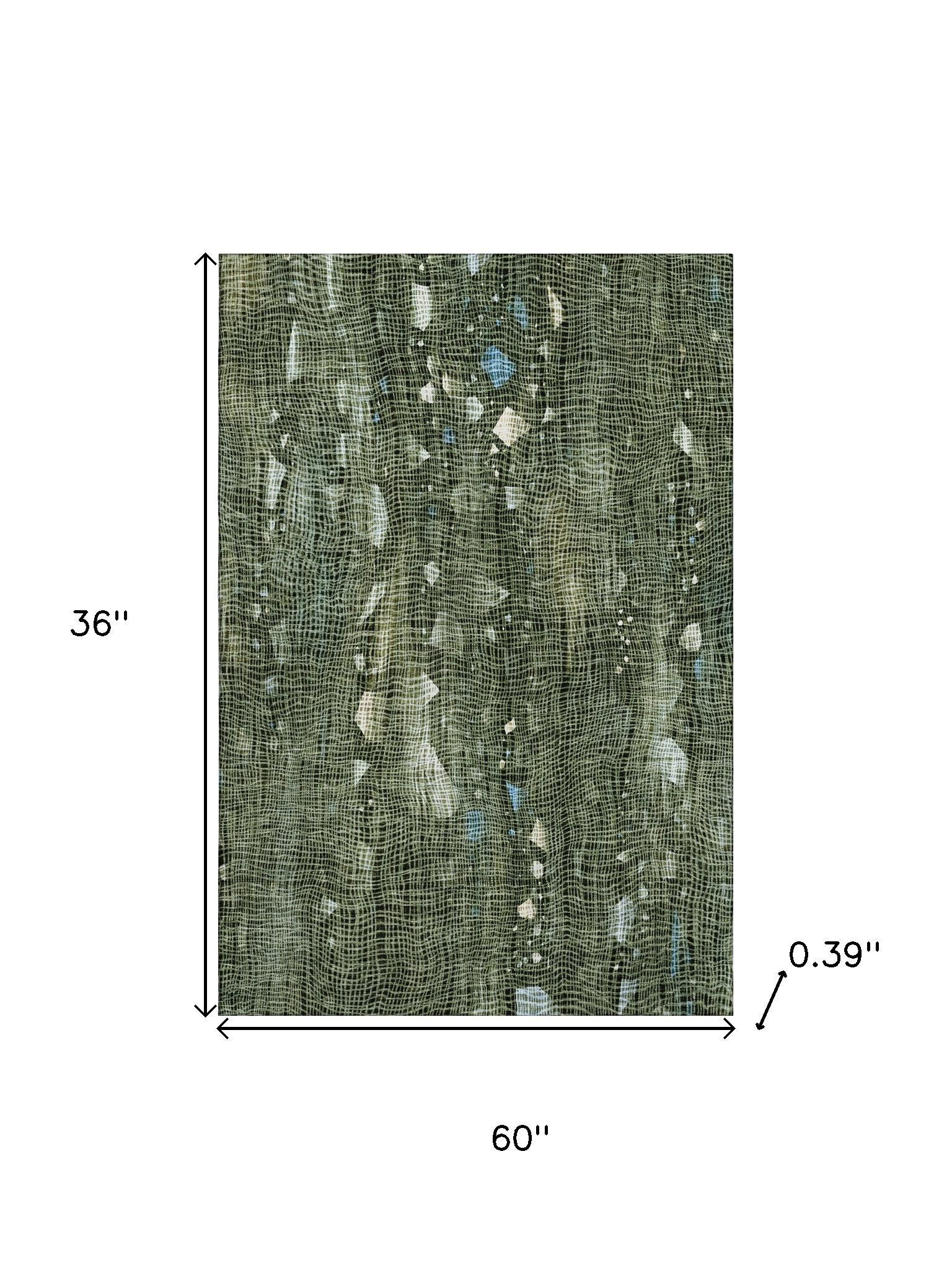 Set an inviting tone in your space with this 3-foot x 5-foot fern green and blue abstract washable area rug with uv protection. Ideal for spaces with kids and pets, this rug is stain resistant to help repel dirt and spilled liquids. Built to last, this rug crafted from polyester fibers is known for its durability and long lasting appeal. Rugs are a great way to showcase your style, hide imperfections, warm your home and reduce noise. This smaller sized, transitional styled rug is just what you need for your walkway, bedside, in front of door, cabinet, refrigerator, or chair. 36.00-inch h x 60.00-inch w x 0.39-inch d.