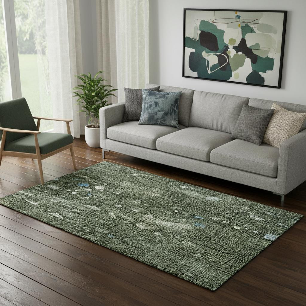 Add great coloration and comfortable texture to your space with this 5-foot x 8-foot fern green and blue abstract washable area rug with uv protection. Ideal for spaces with kids and pets, this rug is stain resistant to help repel dirt and spilled liquids. Built to last, this rug crafted from polyester fibers is known for its durability and long lasting appeal. Rugs are a great way to showcase your style, hide imperfections, warm your home and reduce noise. This larger sized, transitional styled rug is ready to create a focal point or statement piece in your room. 60.00-inch h x 90.00-inch w x 0.39-inch d.