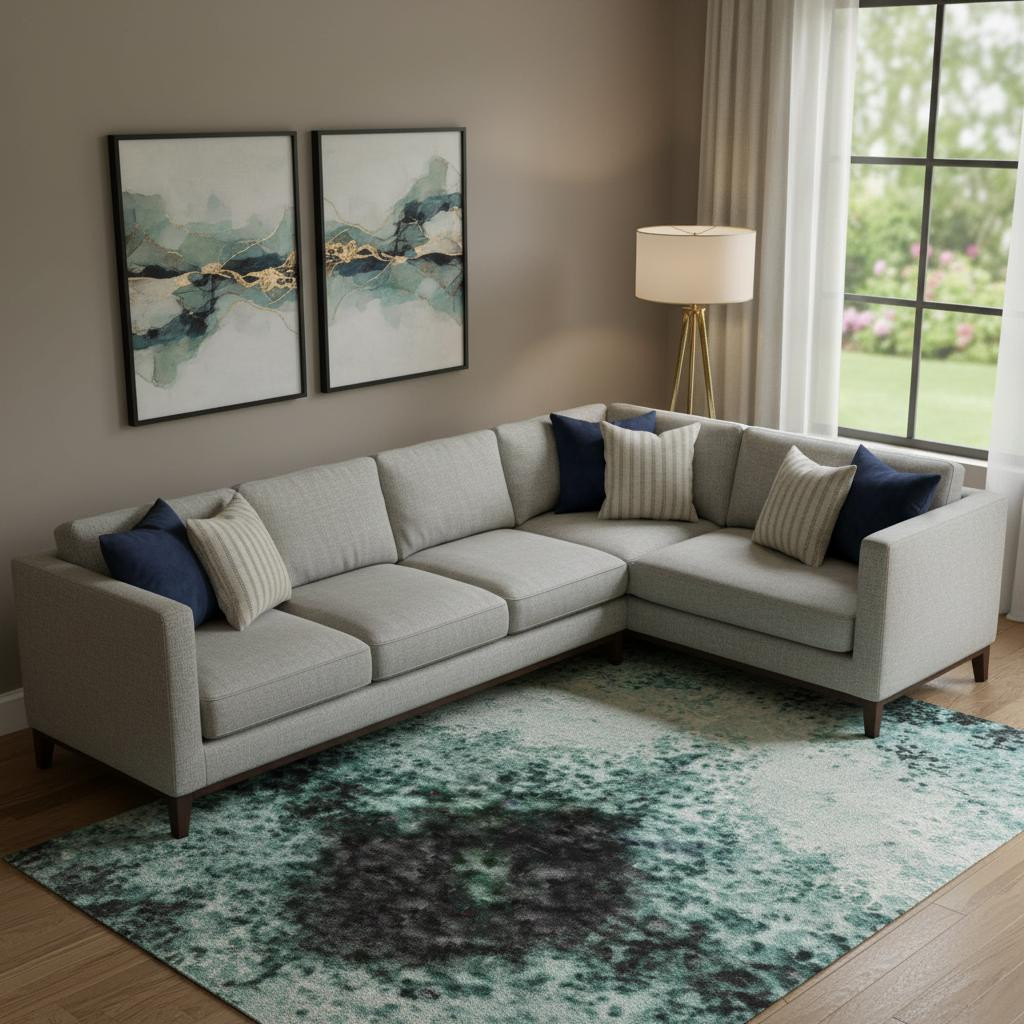 Set an inviting tone in your space with this 8-foot x 10-foot teal and ivory abstract washable area rug with uv protection. Ideal for spaces with kids and pets, this rug is stain resistant to help repel dirt and spilled liquids. Built to last, this rug crafted from polyester fibers is known for its durability and long lasting appeal. Rugs are a great way to showcase your style, hide imperfections, warm your home and reduce noise. This larger sized, transitional styled rug is ready to create a focal point or statement piece in your room. 96.00-inch h x 120.00-inch w x 0.39-inch d.