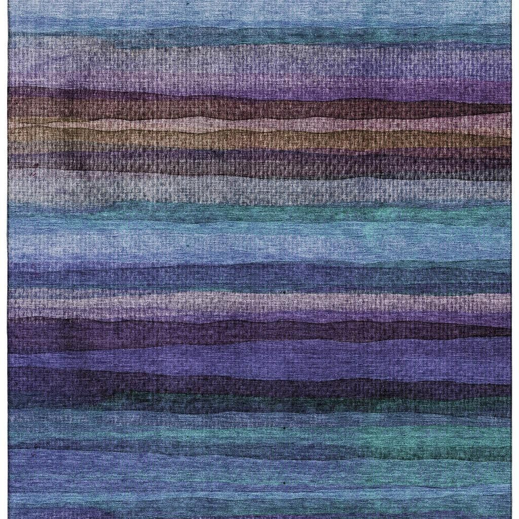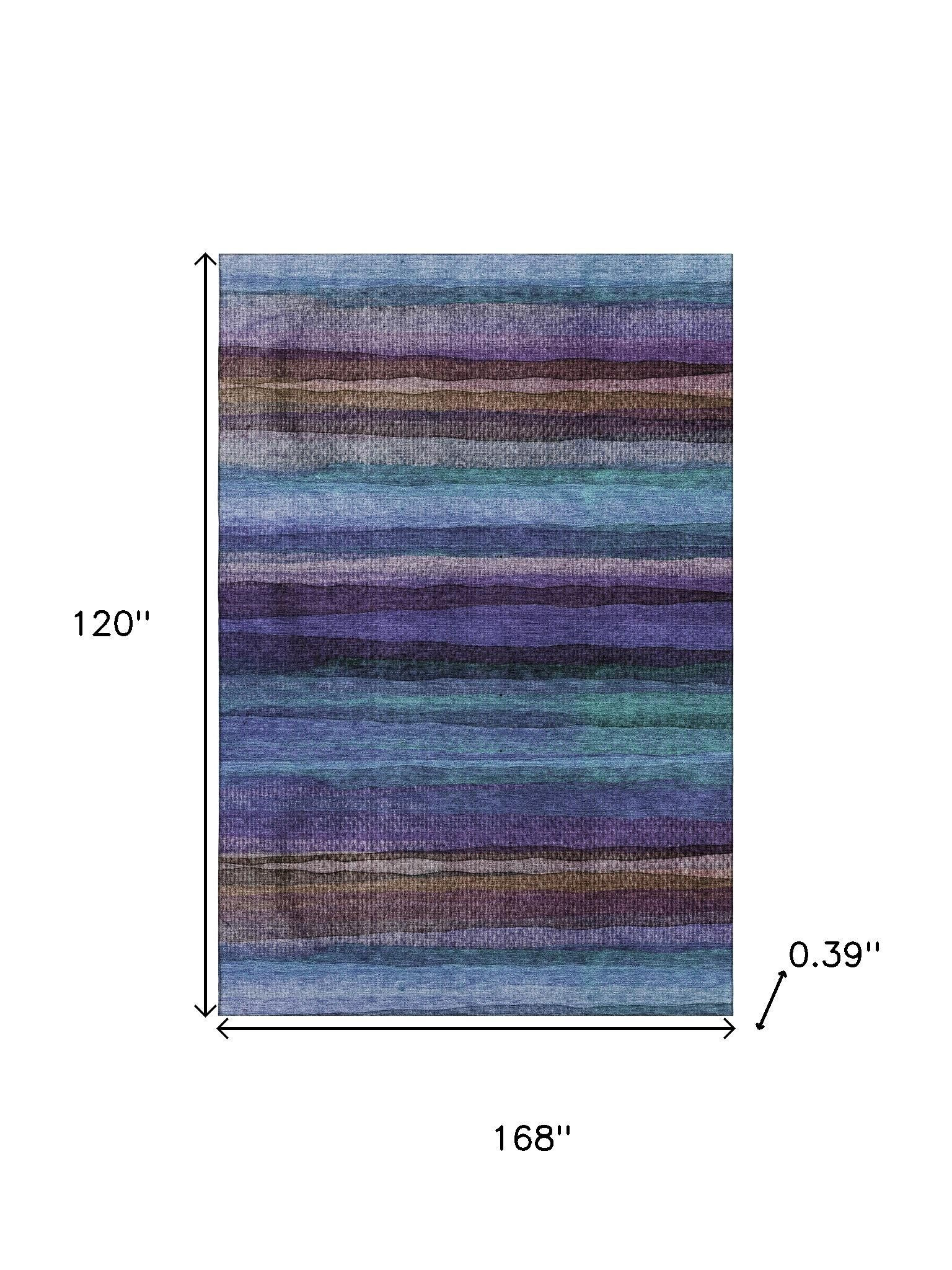Set an inviting tone in your space with this 10-foot x 14-foot blue and purple striped washable area rug with uv protection. Ideal for spaces with kids and pets, this rug is stain resistant to help repel dirt and spilled liquids. Built to last, this rug crafted from polyester fibers is known for its durability and long lasting appeal. Rugs are a great way to showcase your style, hide imperfections, warm your home and reduce noise. This larger sized, transitional styled rug is ready to create a focal point or statement piece in your room. 120.00-inch h x 168.00-inch w x 0.39-inch d.