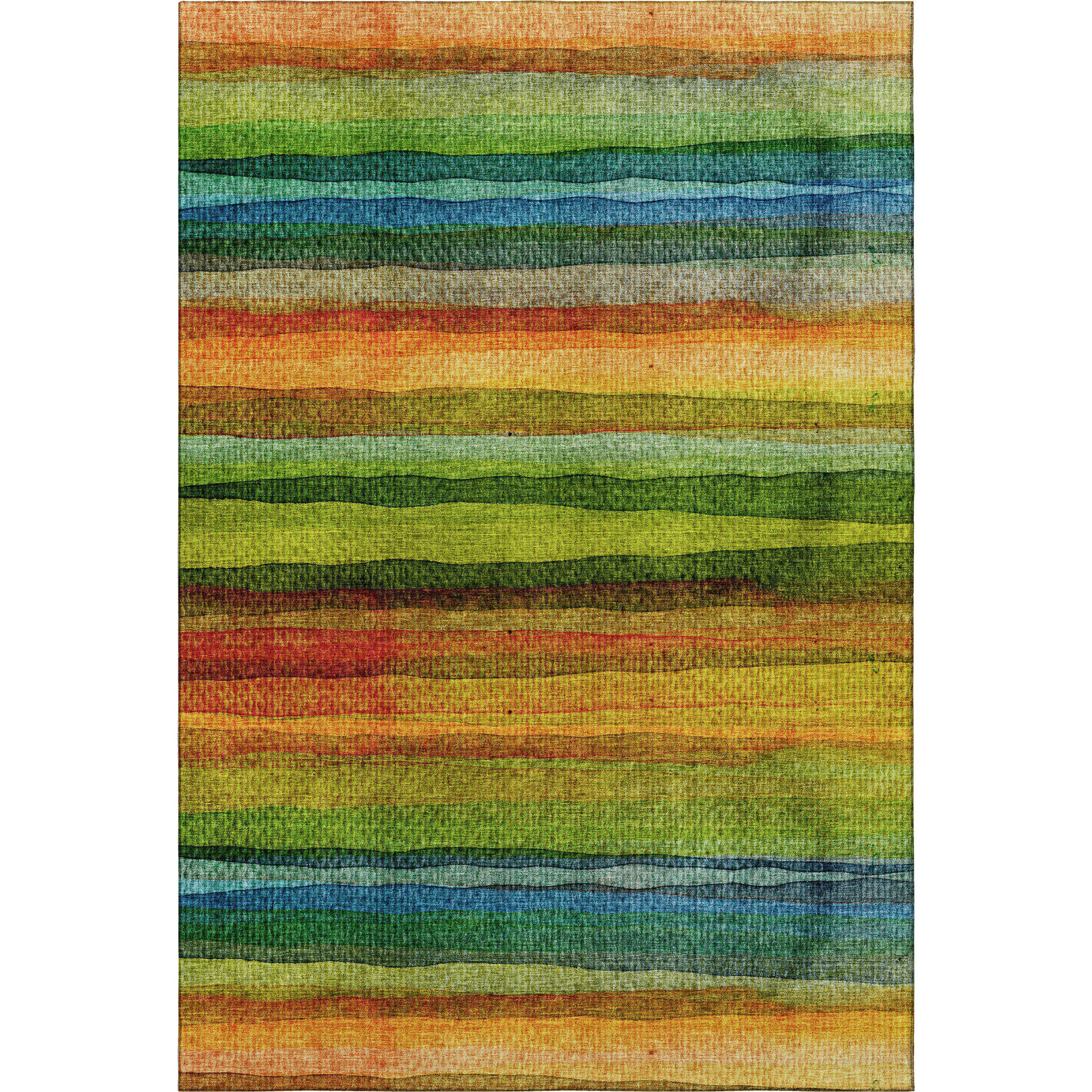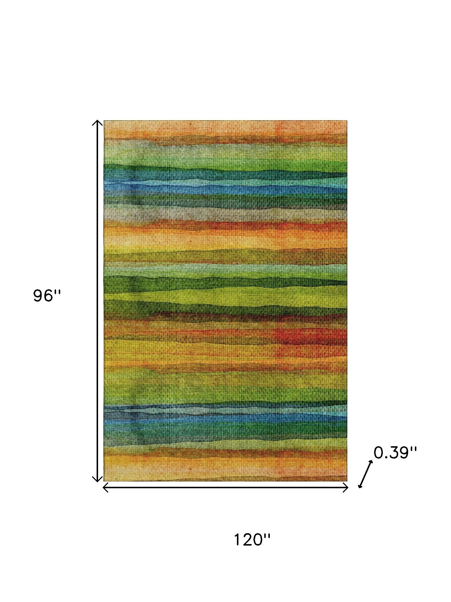 This 8-foot x 10-foot green and teal striped washable area rug with uv protection, is a great way to add warmth to a room. Ideal for spaces with kids and pets, this rug is stain resistant to help repel dirt and spilled liquids. Built to last, this rug crafted from polyester fibers is known for its durability and long lasting appeal. Rugs are a great way to showcase your style, hide imperfections, warm your home and reduce noise. This larger sized, transitional styled rug is ready to create a focal point or statement piece in your room. 96.00-inch h x 120.00-inch w x 0.39-inch d.