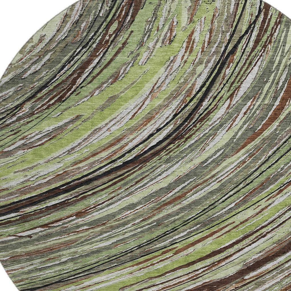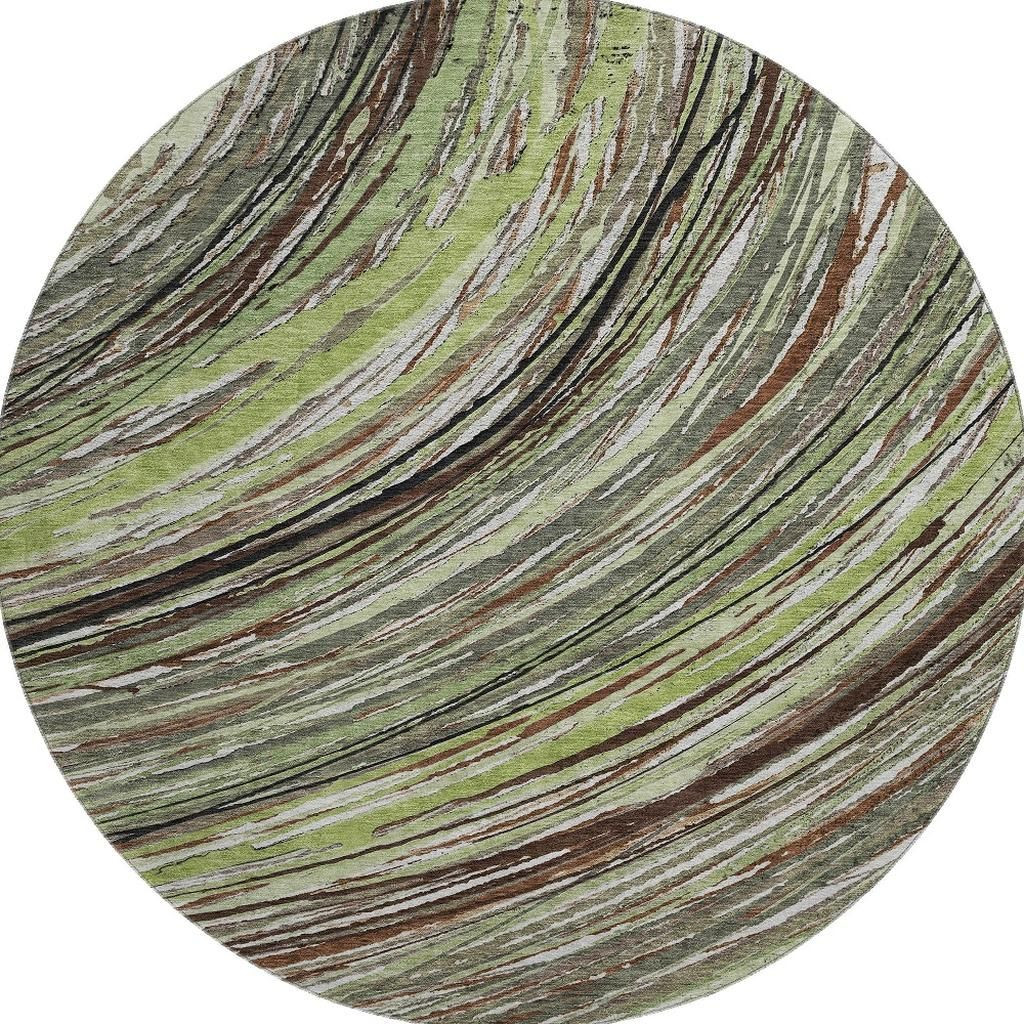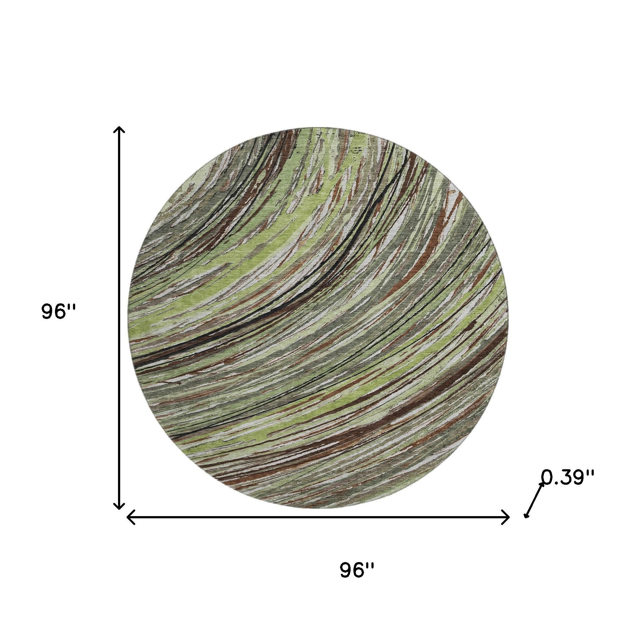 Add great coloration and comfortable texture to your space with this 8-foot sage and ivory abstract washable round rug with uv protection. Ideal for spaces with kids and pets, this rug is stain resistant to help repel dirt and spilled liquids. Built to last, this rug crafted from polyester fibers is known for its durability and long lasting appeal. Rugs are a great way to showcase your style, hide imperfections, warm your home and reduce noise. This larger sized, transitional styled rug is ready to create a focal point or statement piece in your room. 96.00-inch h x 96.00-inch w x 0.39-inch d.