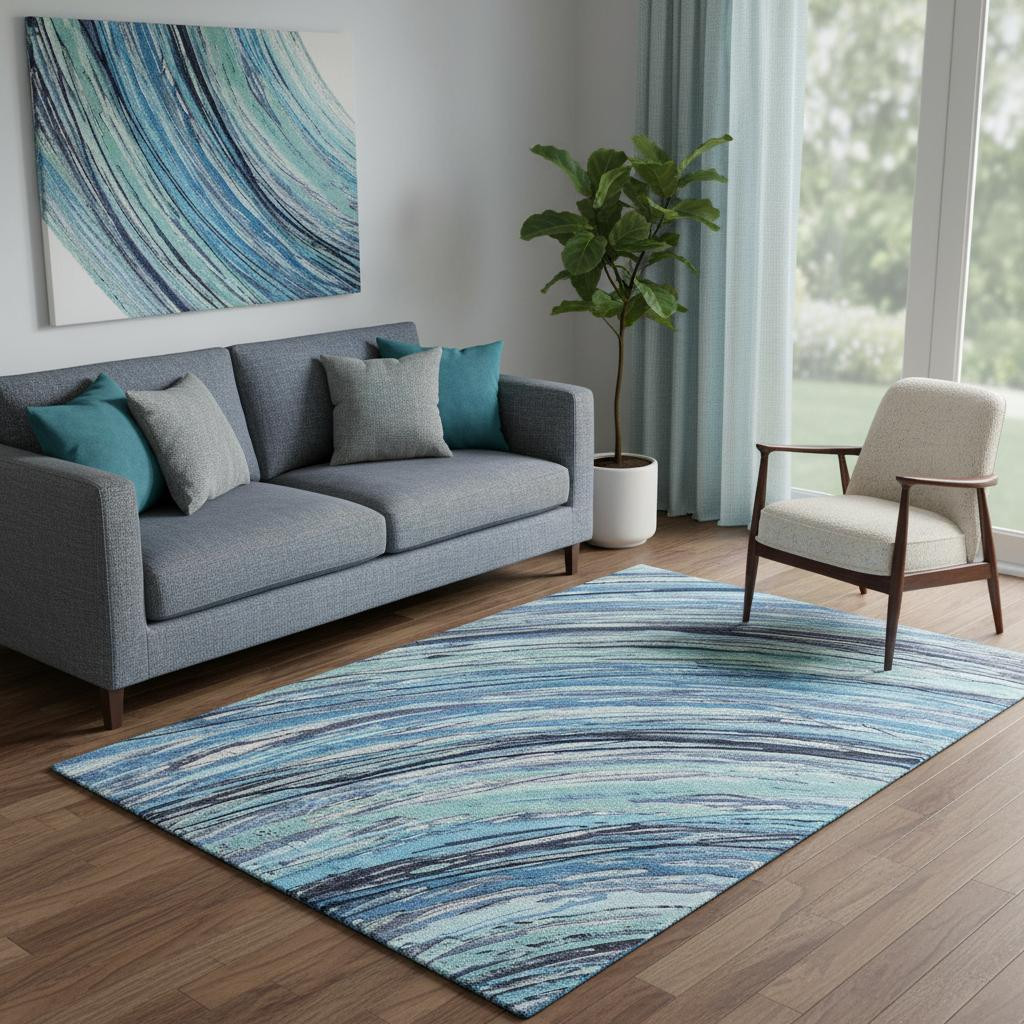 This 5-foot x 8-foot blue and ivory abstract washable area rug with uv protection, is a great way to add warmth to a room. Ideal for spaces with kids and pets, this rug is stain resistant to help repel dirt and spilled liquids. Built to last, this rug crafted from polyester fibers is known for its durability and long lasting appeal. Rugs are a great way to showcase your style, hide imperfections, warm your home and reduce noise. This larger sized, transitional styled rug is ready to create a focal point or statement piece in your room. 60.00-inch h x 90.00-inch w x 0.39-inch d.