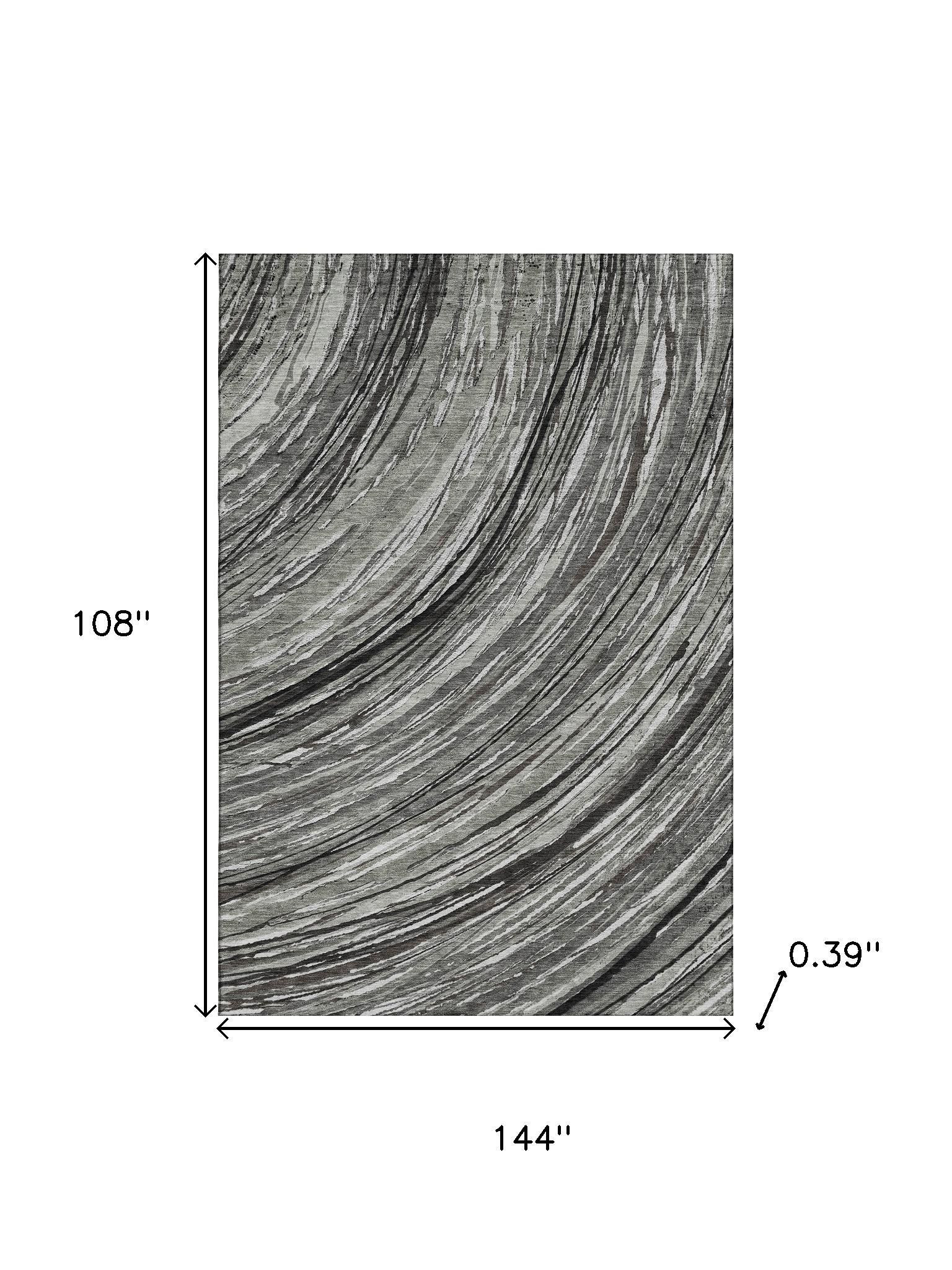 Add some artistry to your room with this 9-foot x 12-foot taupe and gray abstract washable area rug with uv protection. Ideal for spaces with kids and pets, this rug is stain resistant to help repel dirt and spilled liquids. Built to last, this rug crafted from polyester fibers is known for its durability and long lasting appeal. Rugs are a great way to showcase your style, hide imperfections, warm your home and reduce noise. This larger sized, transitional styled rug is ready to create a focal point or statement piece in your room. 108.00-inch h x 144.00-inch w x 0.39-inch d.