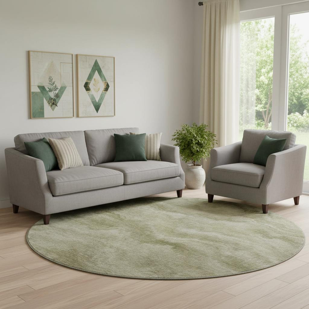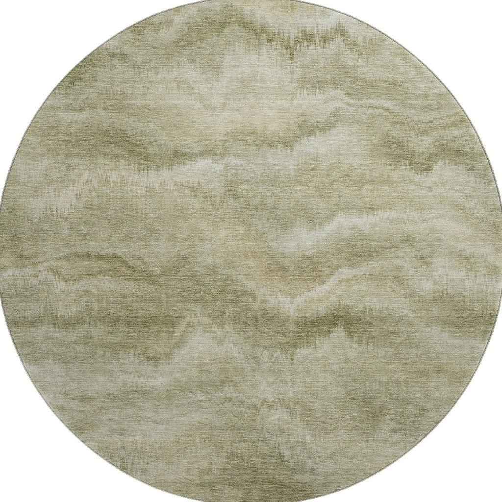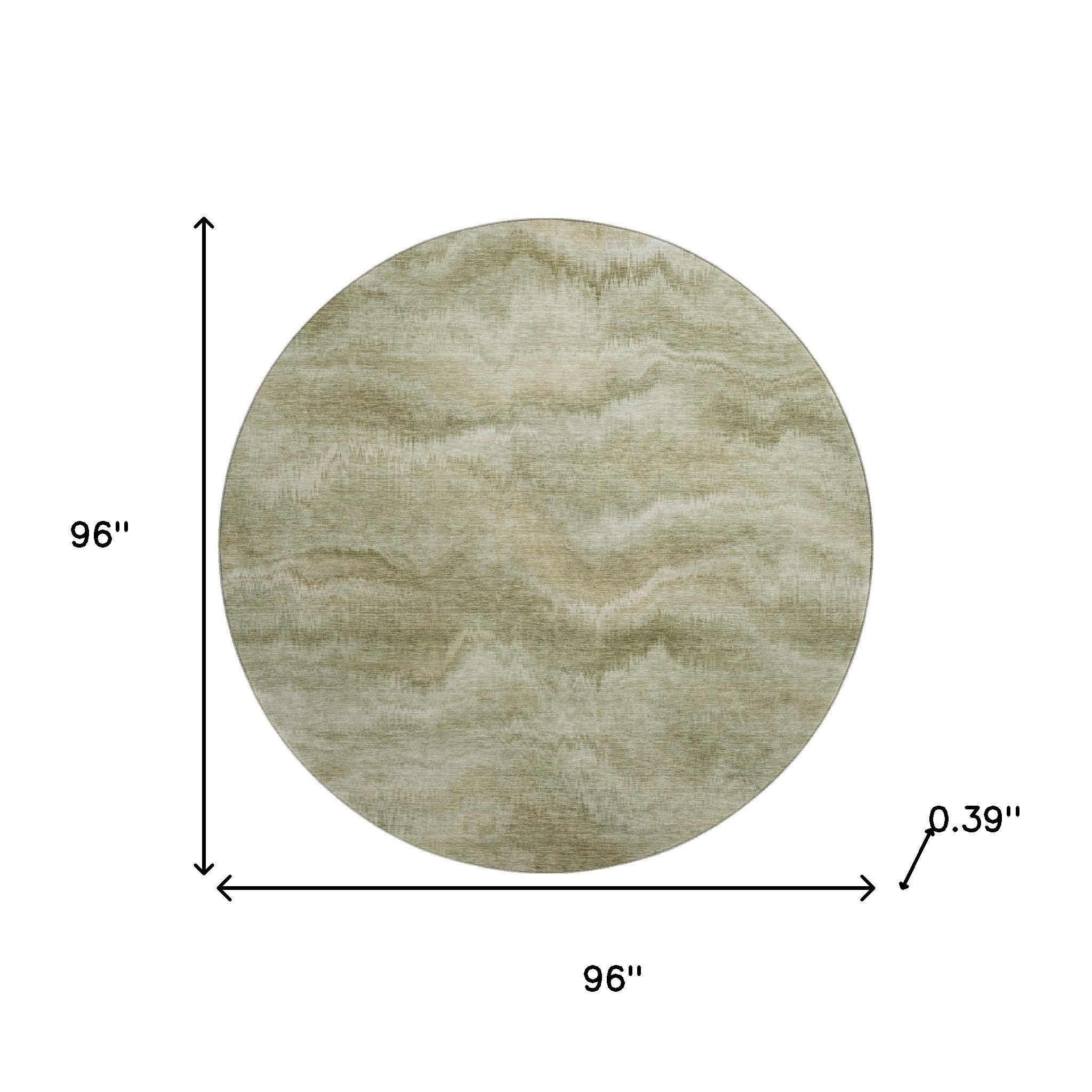 Add some artistry to your room with this 8-foot sage and beige abstract washable round rug with uv protection. Ideal for spaces with kids and pets, this rug is stain resistant to help repel dirt and spilled liquids. Built to last, this rug crafted from polyester fibers is known for its durability and long lasting appeal. Rugs are a great way to showcase your style, hide imperfections, warm your home and reduce noise. This larger sized, transitional styled rug is ready to create a focal point or statement piece in your room. 96.00-inch h x 96.00-inch w x 0.39-inch d.
