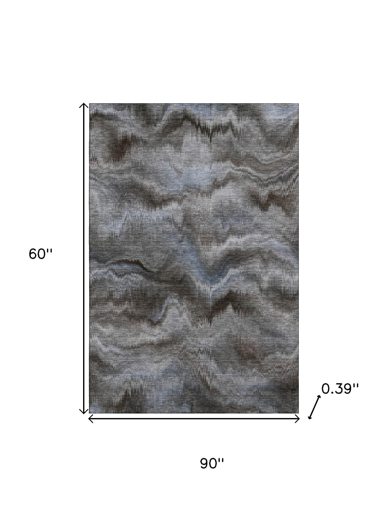 This 5-foot x 8-foot taupe and gray abstract washable area rug with uv protection, is a great way to add warmth to a room. Ideal for spaces with kids and pets, this rug is stain resistant to help repel dirt and spilled liquids. Built to last, this rug crafted from polyester fibers is known for its durability and long lasting appeal. Rugs are a great way to showcase your style, hide imperfections, warm your home and reduce noise. This larger sized, transitional styled rug is ready to create a focal point or statement piece in your room. 60.00-inch h x 90.00-inch w x 0.39-inch d.