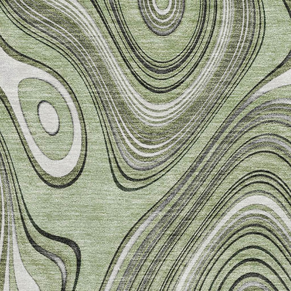 Add some artistry to your room with this 8-foot x 10-foot sage and ivory geometric washable area rug with uv protection. Ideal for spaces with kids and pets, this rug is stain resistant to help repel dirt and spilled liquids. Built to last, this rug crafted from polyester fibers is known for its durability and long lasting appeal. Rugs are a great way to showcase your style, hide imperfections, warm your home and reduce noise. This larger sized, transitional styled rug is ready to create a focal point or statement piece in your room. 96.00-inch h x 120.00-inch w x 0.39-inch d.