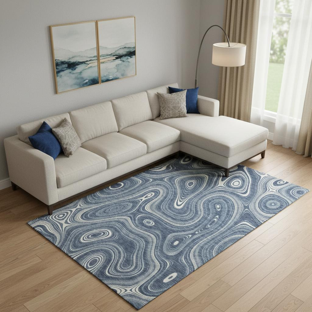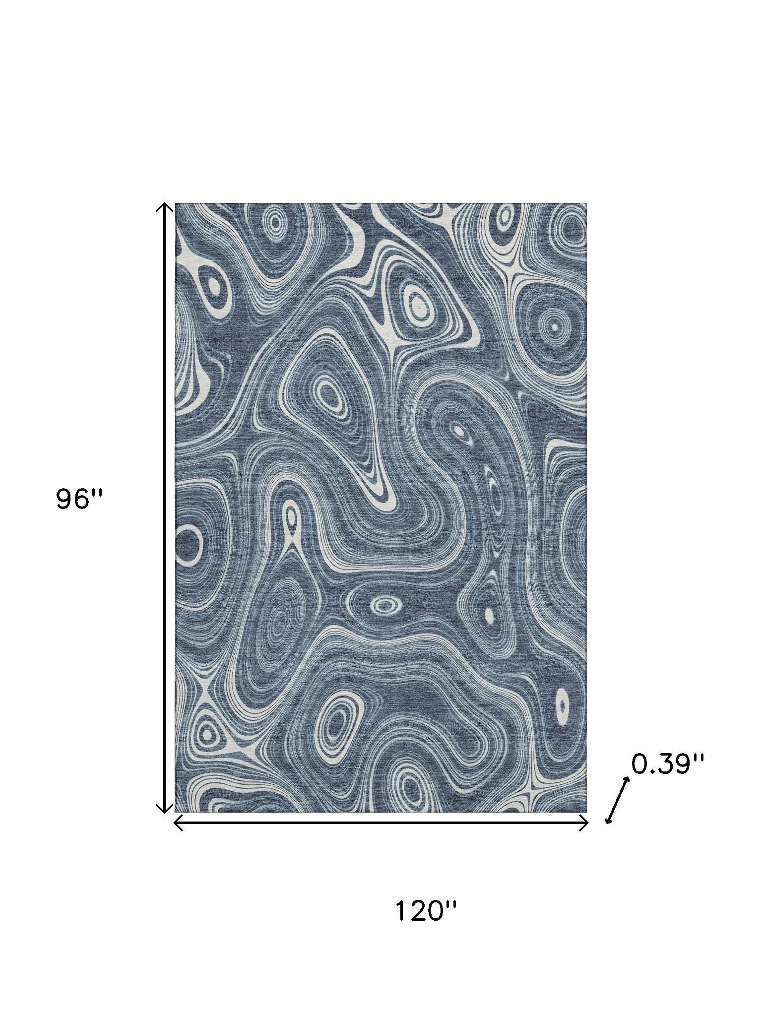 This 8-foot x 10-foot blue and ivory geometric washable area rug with uv protection, is a great way to add warmth to a room. Ideal for spaces with kids and pets, this rug is stain resistant to help repel dirt and spilled liquids. Built to last, this rug crafted from polyester fibers is known for its durability and long lasting appeal. Rugs are a great way to showcase your style, hide imperfections, warm your home and reduce noise. This larger sized, transitional styled rug is ready to create a focal point or statement piece in your room. 96.00-inch h x 120.00-inch w x 0.39-inch d.