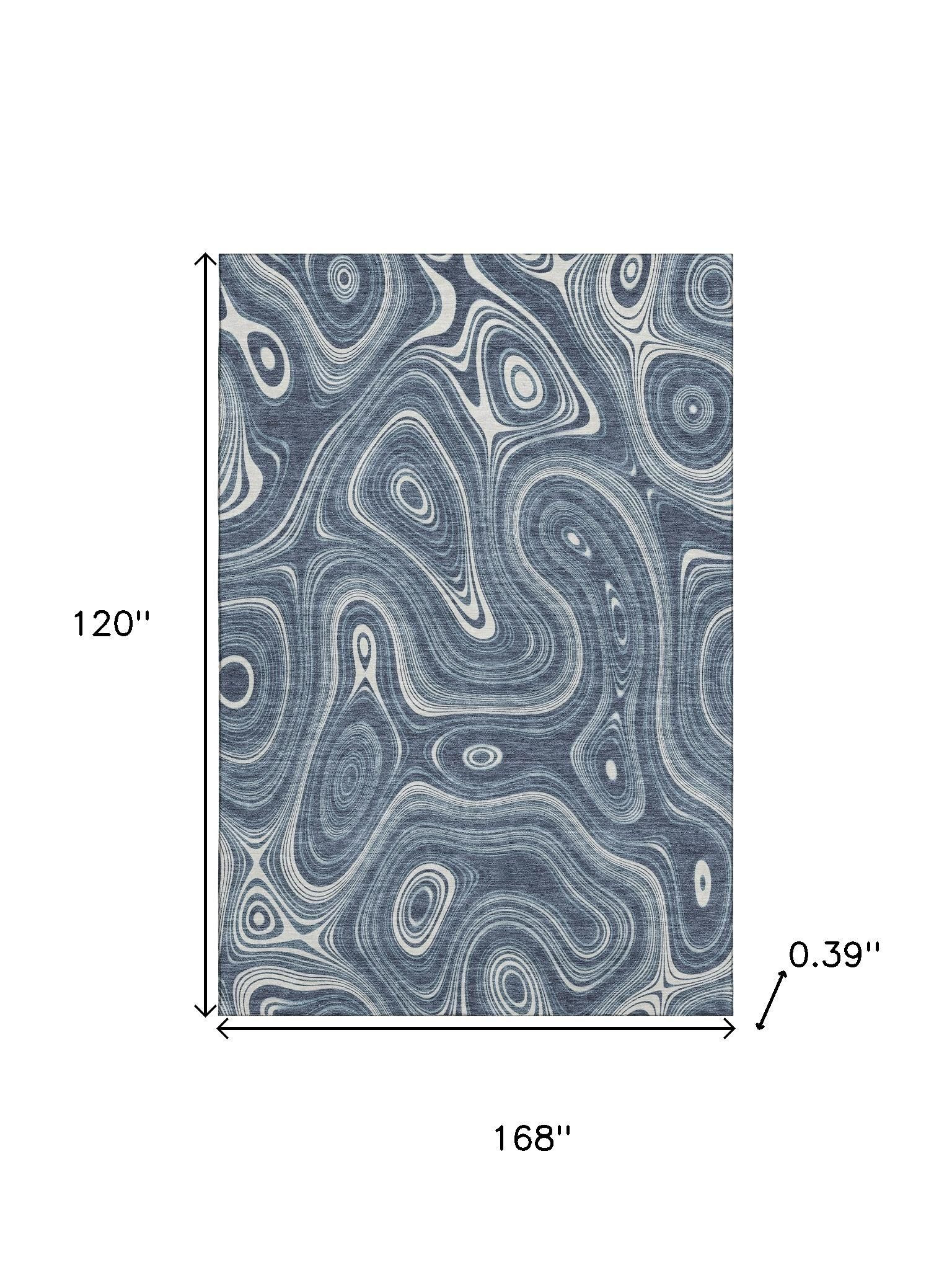 This 10-foot x 14-foot blue and ivory geometric washable area rug with uv protection, is a great way to add warmth to a room. Ideal for spaces with kids and pets, this rug is stain resistant to help repel dirt and spilled liquids. Built to last, this rug crafted from polyester fibers is known for its durability and long lasting appeal. Rugs are a great way to showcase your style, hide imperfections, warm your home and reduce noise. This larger sized, transitional styled rug is ready to create a focal point or statement piece in your room. 120.00-inch h x 168.00-inch w x 0.39-inch d.