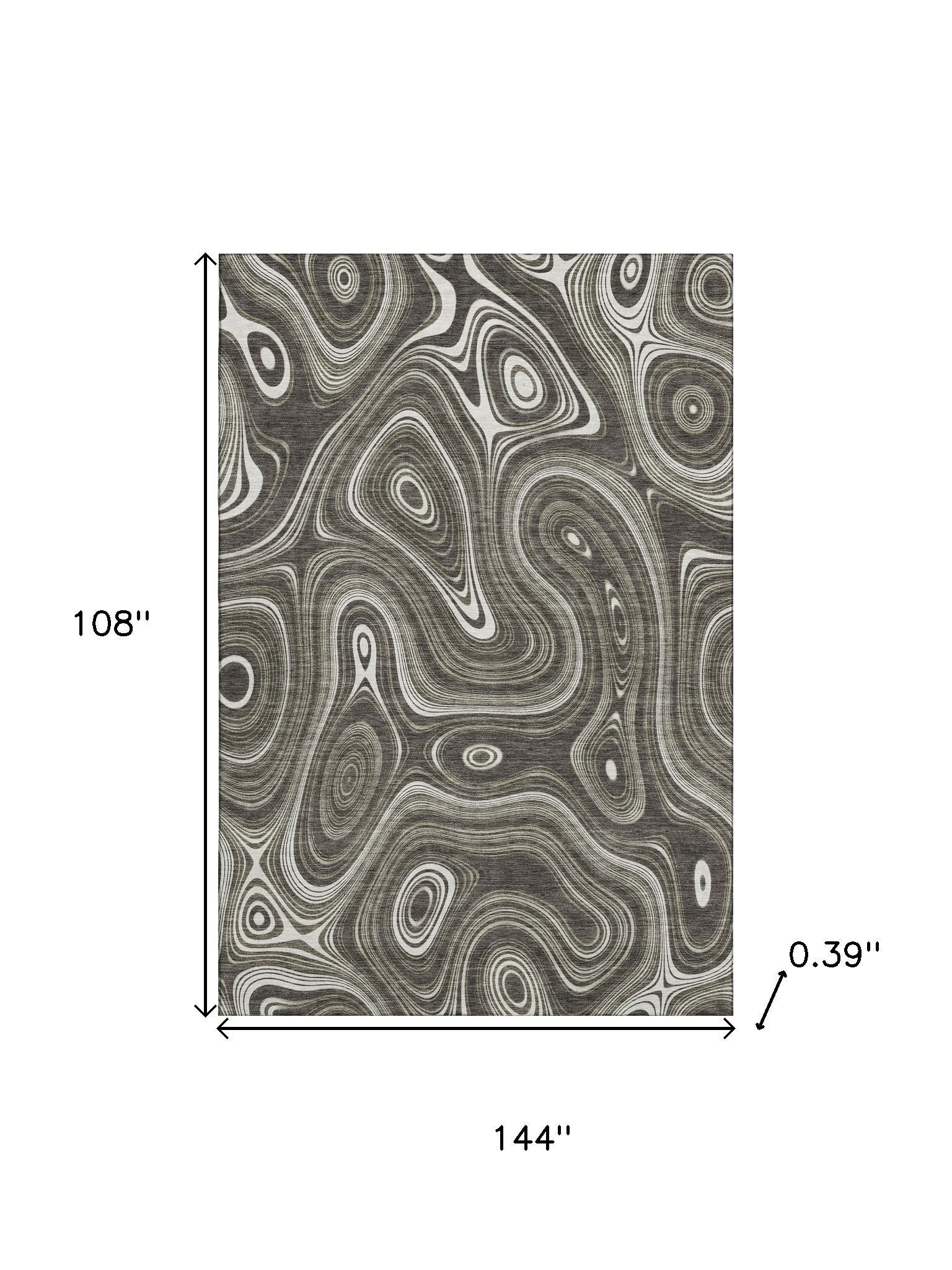 This 9-foot x 12-foot gray and silver geometric washable area rug with uv protection, is a great way to add warmth to a room. Ideal for spaces with kids and pets, this rug is stain resistant to help repel dirt and spilled liquids. Built to last, this rug crafted from polyester fibers is known for its durability and long lasting appeal. Rugs are a great way to showcase your style, hide imperfections, warm your home and reduce noise. This larger sized, transitional styled rug is ready to create a focal point or statement piece in your room. 108.00-inch h x 144.00-inch w x 0.39-inch d.