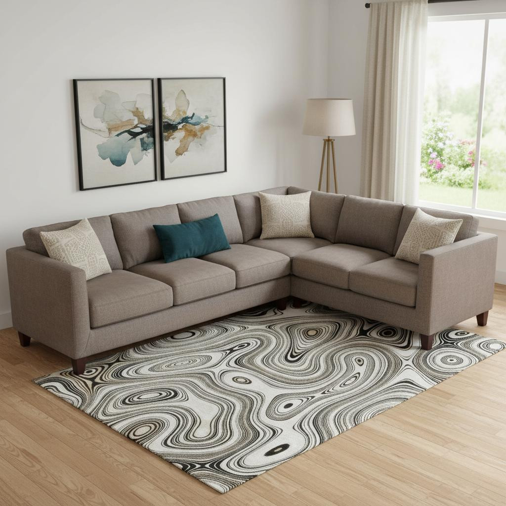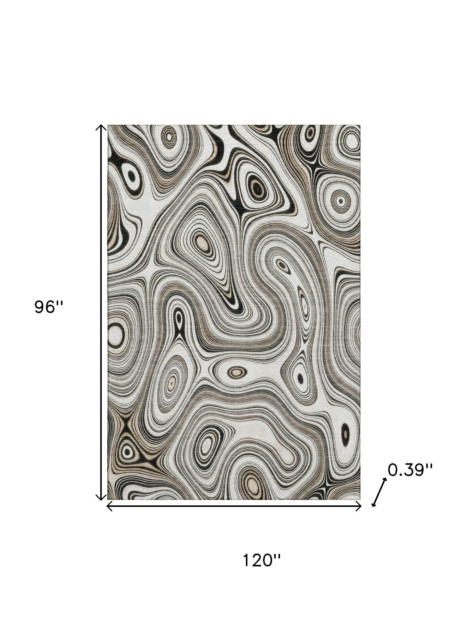 Add some artistry to your room with this 8-foot x 10-foot ivory and charcoal geometric washable area rug with uv protection. Ideal for spaces with kids and pets, this rug is stain resistant to help repel dirt and spilled liquids. Built to last, this rug crafted from polyester fibers is known for its durability and long lasting appeal. Rugs are a great way to showcase your style, hide imperfections, warm your home and reduce noise. This larger sized, transitional styled rug is ready to create a focal point or statement piece in your room. 96.00-inch h x 120.00-inch w x 0.39-inch d.