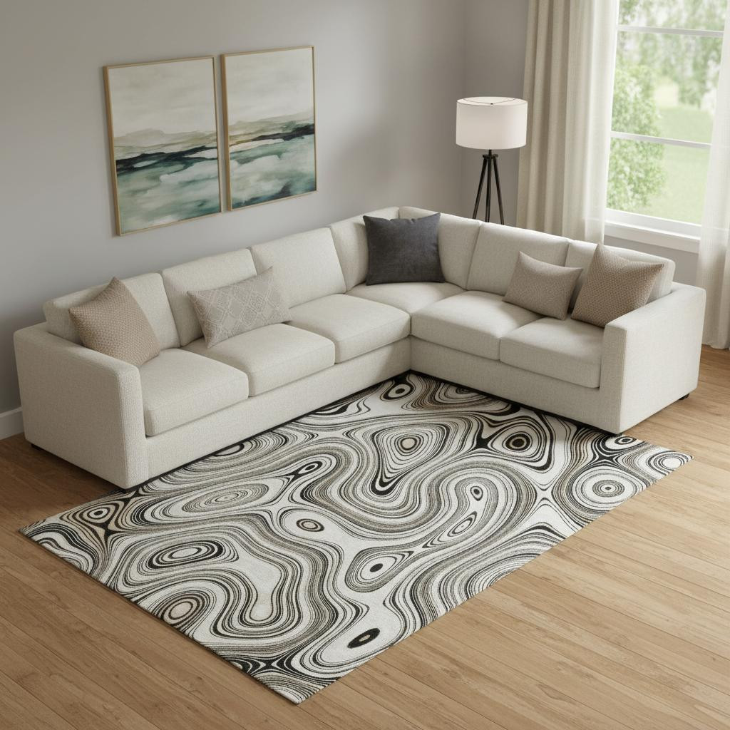 Add some artistry to your room with this 10-foot x 14-foot ivory and charcoal geometric washable area rug with uv protection. Ideal for spaces with kids and pets, this rug is stain resistant to help repel dirt and spilled liquids. Built to last, this rug crafted from polyester fibers is known for its durability and long lasting appeal. Rugs are a great way to showcase your style, hide imperfections, warm your home and reduce noise. This larger sized, transitional styled rug is ready to create a focal point or statement piece in your room. 120.00-inch h x 168.00-inch w x 0.39-inch d.