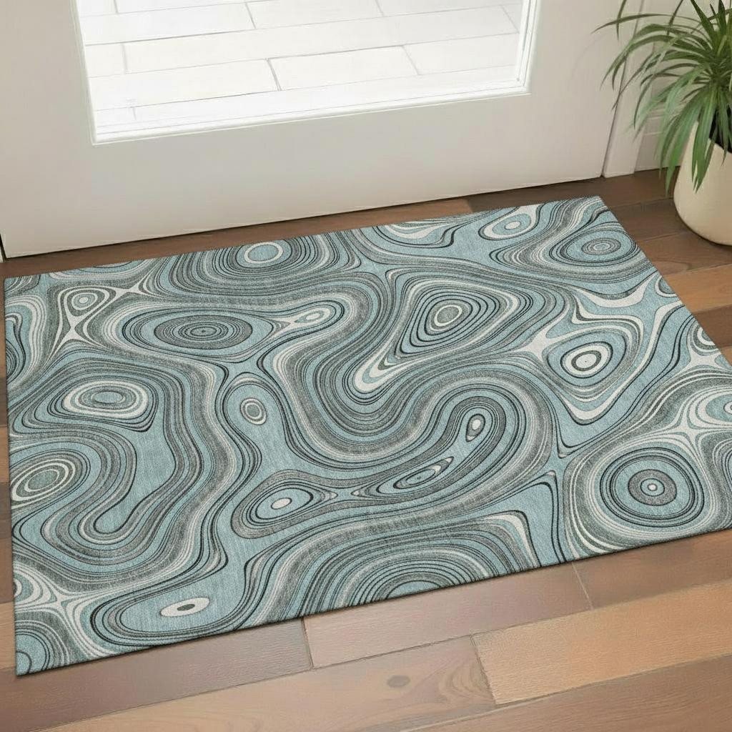 This 3-foot x 5-foot sky blue and ivory geometric washable area rug with uv protection, is a great way to add warmth to a room. Ideal for spaces with kids and pets, this rug is stain resistant to help repel dirt and spilled liquids. Built to last, this rug crafted from polyester fibers is known for its durability and long lasting appeal. Rugs are a great way to showcase your style, hide imperfections, warm your home and reduce noise. This smaller sized, transitional styled rug is just what you need for your walkway, bedside, in front of door, cabinet, refrigerator, or chair. 36.00-inch h x 60.00-inch w x 0.39-inch d.