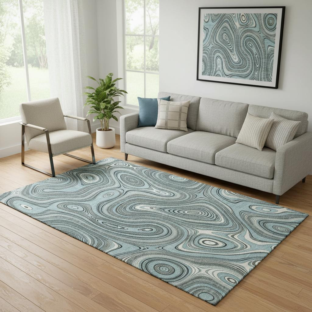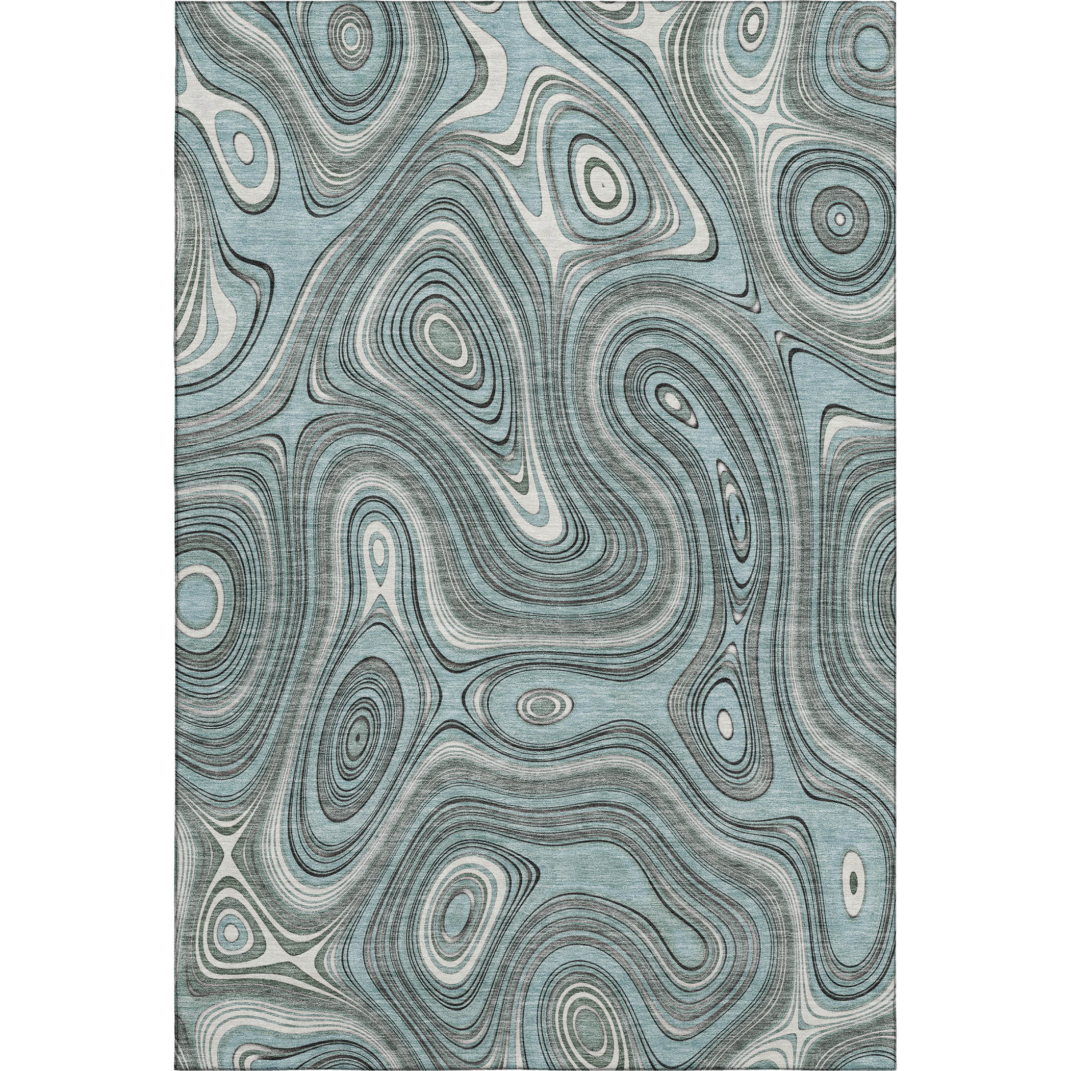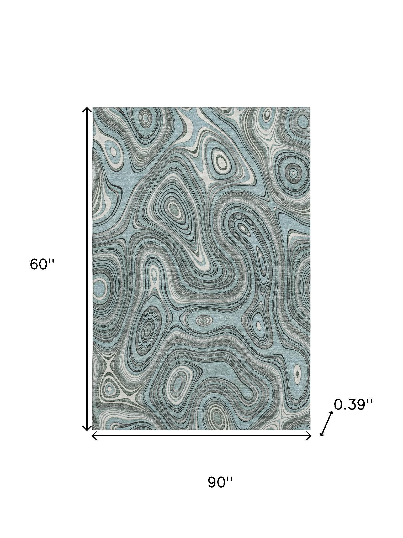 This 5-foot x 8-foot sky blue and ivory geometric washable area rug with uv protection, is a great way to add warmth to a room. Ideal for spaces with kids and pets, this rug is stain resistant to help repel dirt and spilled liquids. Built to last, this rug crafted from polyester fibers is known for its durability and long lasting appeal. Rugs are a great way to showcase your style, hide imperfections, warm your home and reduce noise. This larger sized, transitional styled rug is ready to create a focal point or statement piece in your room. 60.00-inch h x 90.00-inch w x 0.39-inch d.