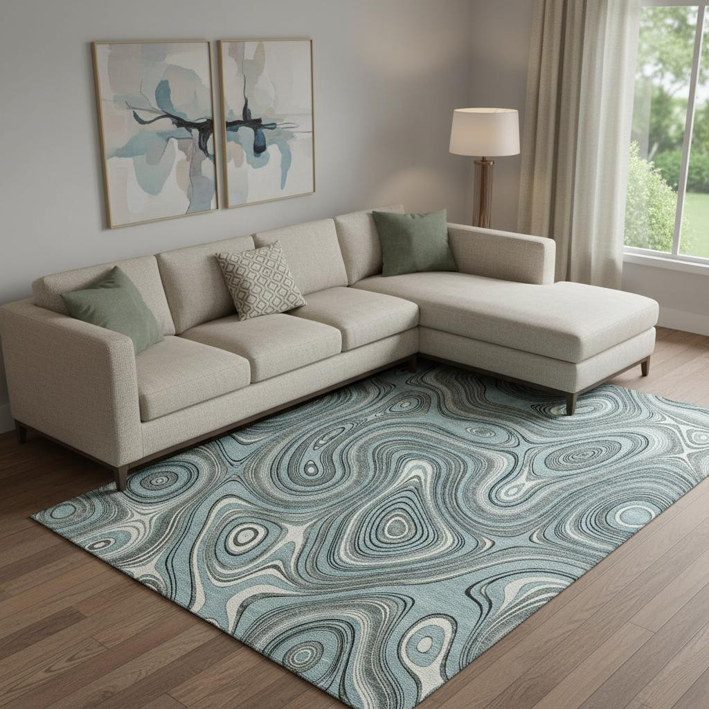 Add some artistry to your room with this 8-foot x 10-foot sky blue and ivory geometric washable area rug with uv protection. Ideal for spaces with kids and pets, this rug is stain resistant to help repel dirt and spilled liquids. Built to last, this rug crafted from polyester fibers is known for its durability and long lasting appeal. Rugs are a great way to showcase your style, hide imperfections, warm your home and reduce noise. This larger sized, transitional styled rug is ready to create a focal point or statement piece in your room. 96.00-inch h x 120.00-inch w x 0.39-inch d.