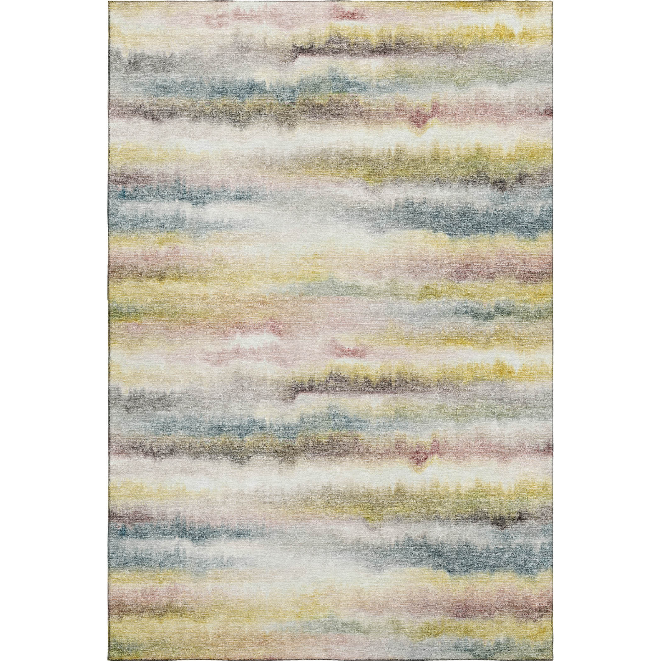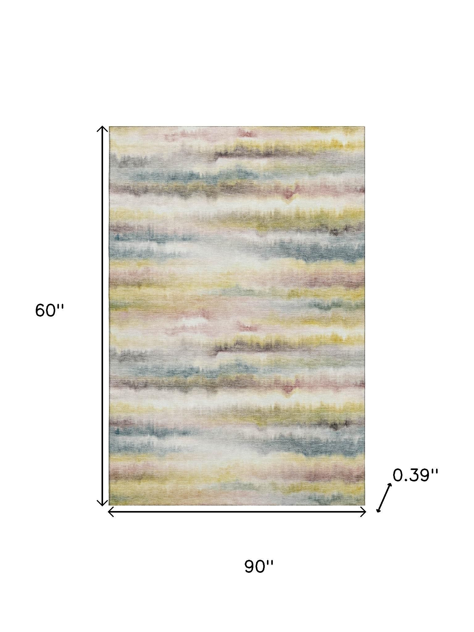 This 5-foot x 8-foot gold and ivory striped washable area rug with uv protection, is a great way to add warmth to a room. Ideal for spaces with kids and pets, this rug is stain resistant to help repel dirt and spilled liquids. Built to last, this rug crafted from polyester fibers is known for its durability and long lasting appeal. Rugs are a great way to showcase your style, hide imperfections, warm your home and reduce noise. This larger sized, transitional styled rug is ready to create a focal point or statement piece in your room. 60.00-inch h x 90.00-inch w x 0.39-inch d.