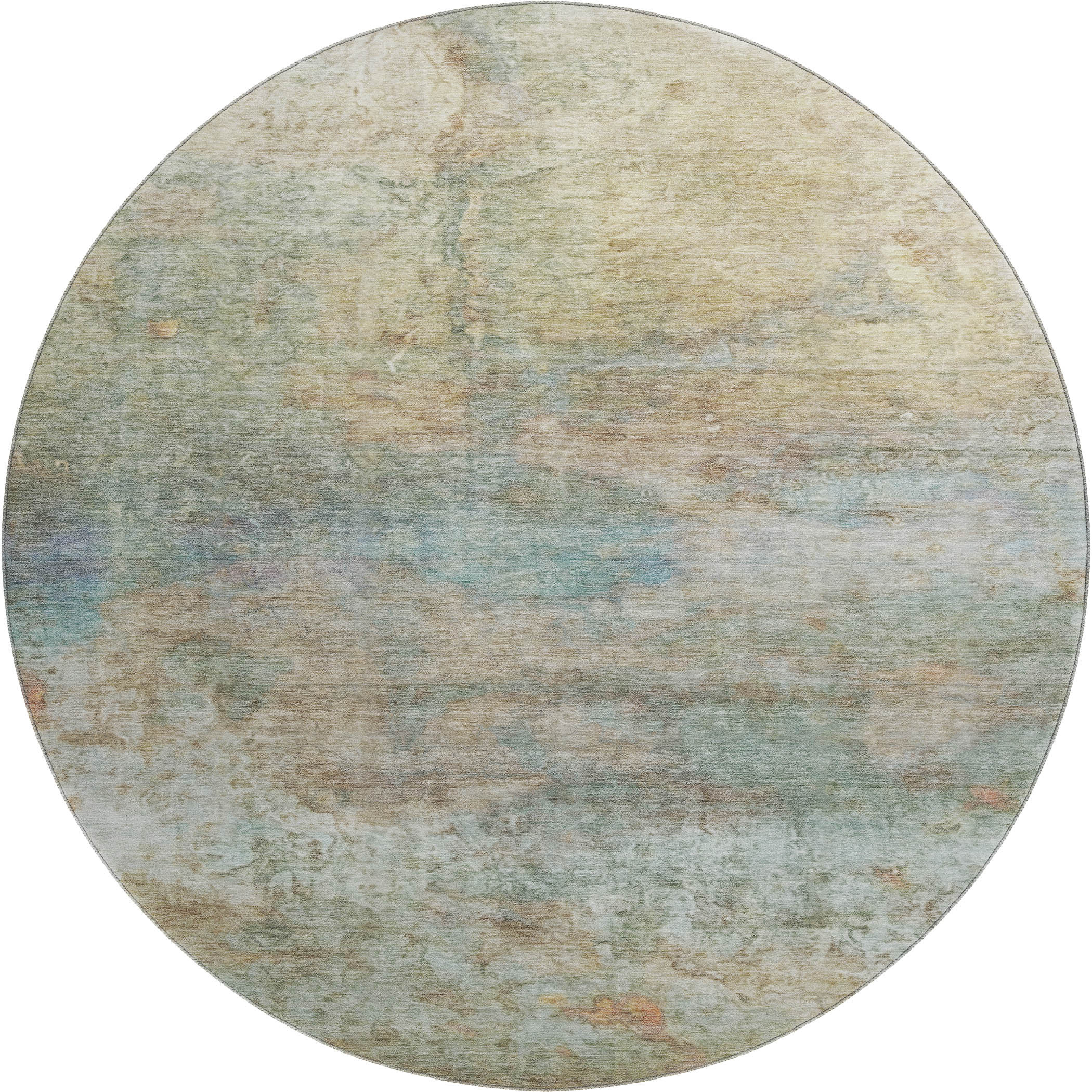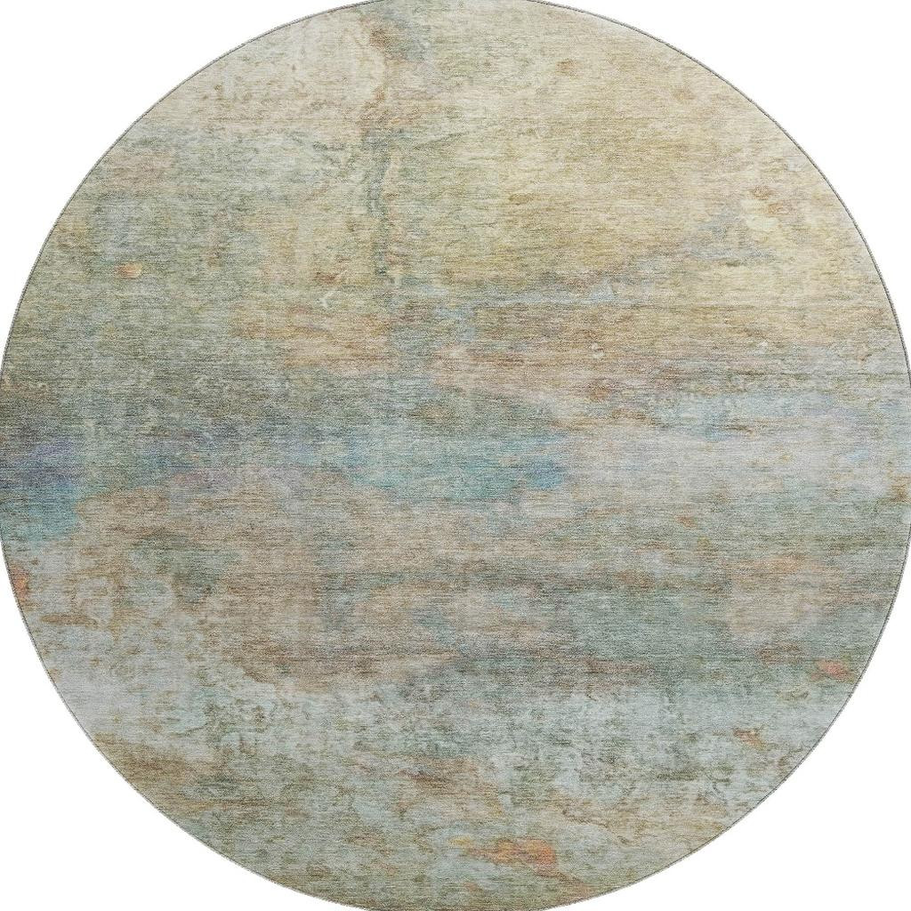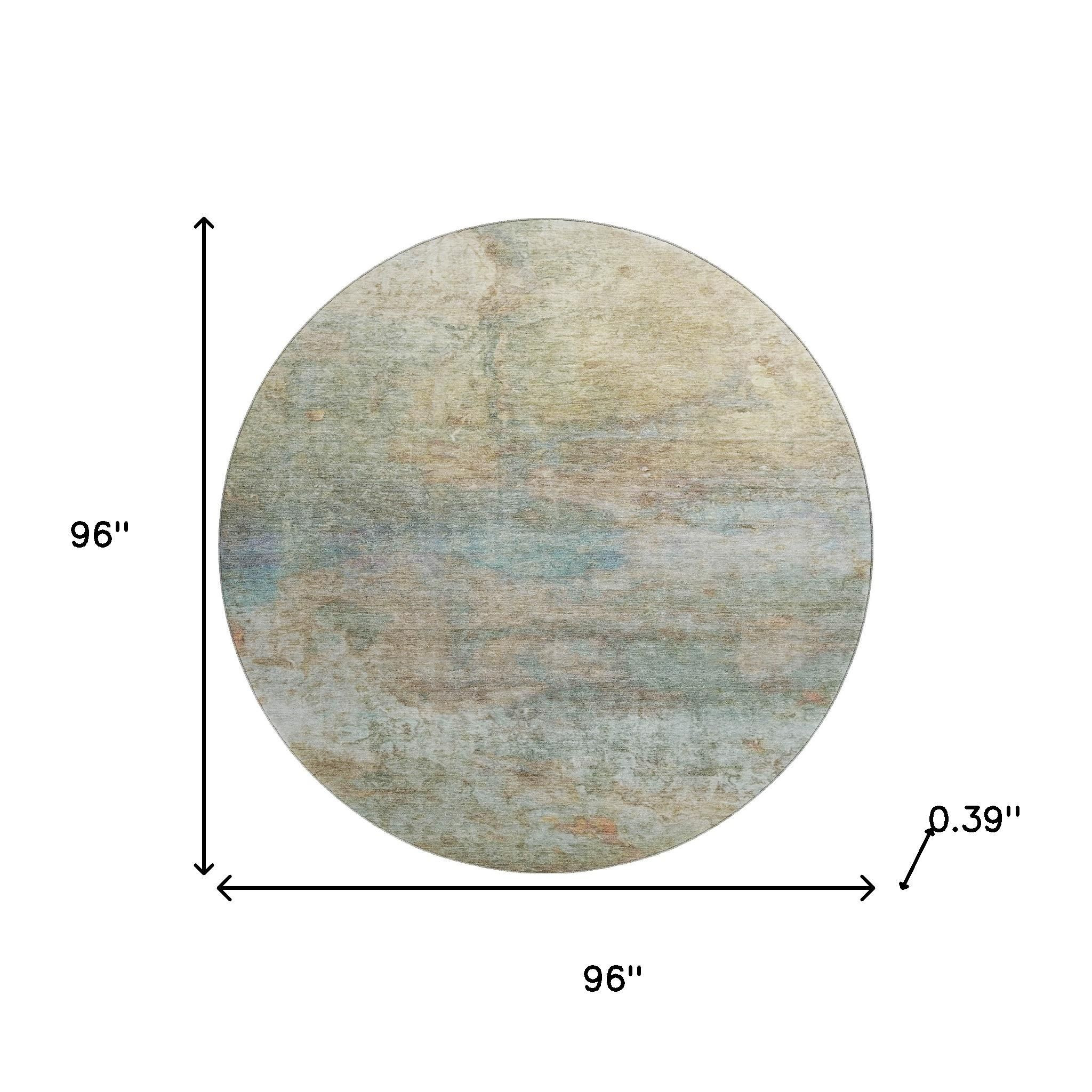 Add great coloration and comfortable texture to your space with this 8-foot wheat and beige abstract washable round rug with uv protection. Ideal for spaces with kids and pets, this rug is stain resistant to help repel dirt and spilled liquids. Built to last, this rug crafted from polyester fibers is known for its durability and long lasting appeal. Rugs are a great way to showcase your style, hide imperfections, warm your home and reduce noise. This larger sized, transitional styled rug is ready to create a focal point or statement piece in your room. 96.00-inch h x 96.00-inch w x 0.39-inch d.