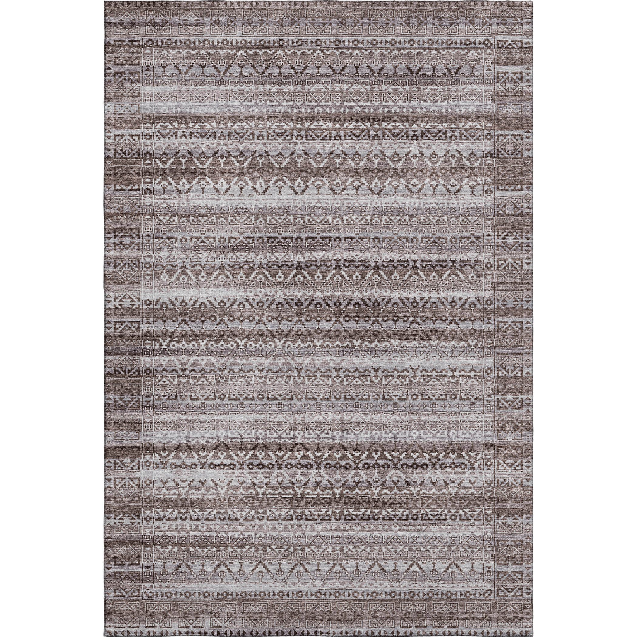 This 5-foot x 8-foot brown and beige striped washable area rug with uv protection, is a great way to add warmth to a room. Ideal for spaces with kids and pets, this rug is stain resistant to help repel dirt and spilled liquids. Built to last, this rug crafted from polyester fibers is known for its durability and long lasting appeal. Rugs are a great way to showcase your style, hide imperfections, warm your home and reduce noise. This larger sized, transitional styled rug is ready to create a focal point or statement piece in your room. 60.00-inch h x 90.00-inch w x 0.39-inch d.