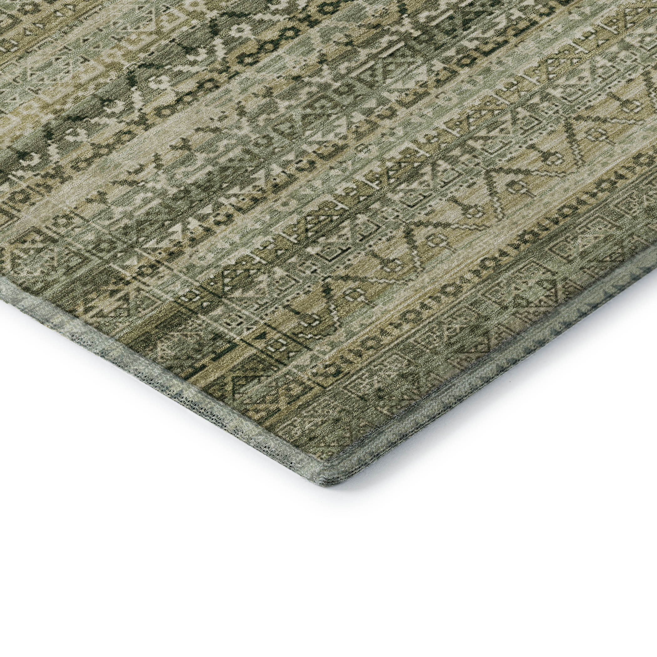 Add some artistry to your room with this 8-foot x 10-foot green and charcoal striped washable area rug with uv protection. Ideal for spaces with kids and pets, this rug is stain resistant to help repel dirt and spilled liquids. Built to last, this rug crafted from polyester fibers is known for its durability and long lasting appeal. Rugs are a great way to showcase your style, hide imperfections, warm your home and reduce noise. This larger sized, transitional styled rug is ready to create a focal point or statement piece in your room. 96.00-inch h x 120.00-inch w x 0.39-inch d.