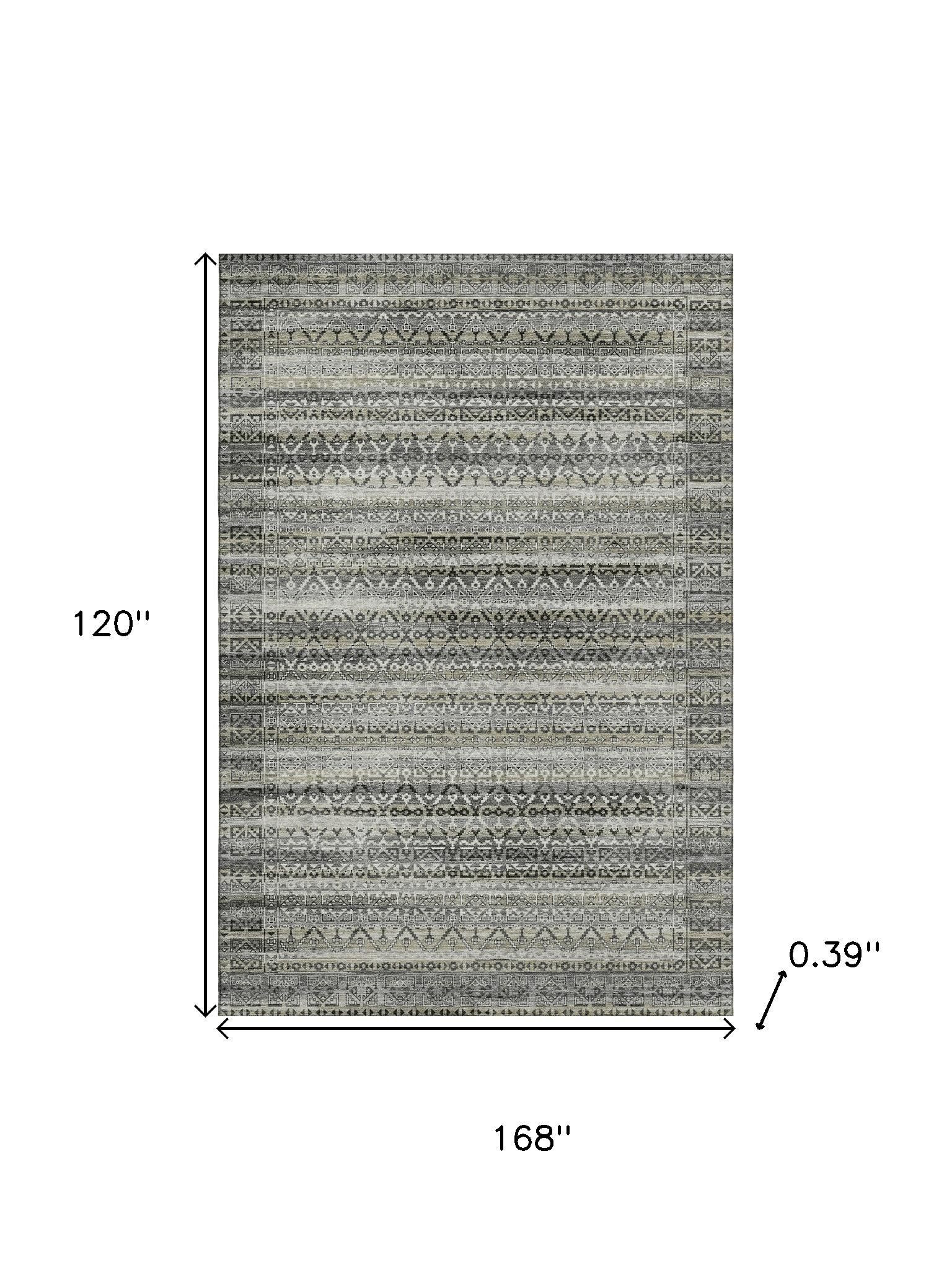 This 10-foot x 14-foot pewter and charcoal striped washable area rug with uv protection, is a great way to add warmth to a room. Ideal for spaces with kids and pets, this rug is stain resistant to help repel dirt and spilled liquids. Built to last, this rug crafted from polyester fibers is known for its durability and long lasting appeal. Rugs are a great way to showcase your style, hide imperfections, warm your home and reduce noise. This larger sized, transitional styled rug is ready to create a focal point or statement piece in your room. 120.00-inch h x 168.00-inch w x 0.39-inch d.