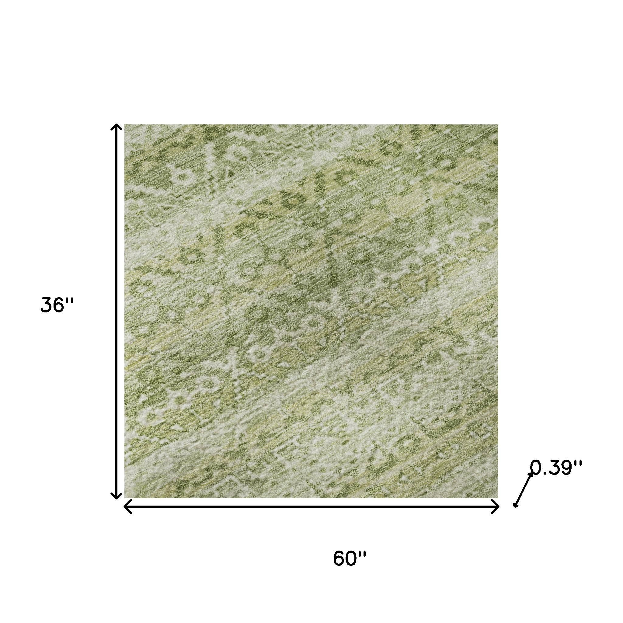 Add some artistry to your room with this 3-foot x 5-foot sage and beige striped washable area rug with uv protection. Ideal for spaces with kids and pets, this rug is stain resistant to help repel dirt and spilled liquids. Built to last, this rug crafted from polyester fibers is known for its durability and long lasting appeal. Rugs are a great way to showcase your style, hide imperfections, warm your home and reduce noise. This smaller sized, transitional styled rug is just what you need for your walkway, bedside, in front of door, cabinet, refrigerator, or chair. 36.00-inch h x 60.00-inch w x 0.39-inch d.