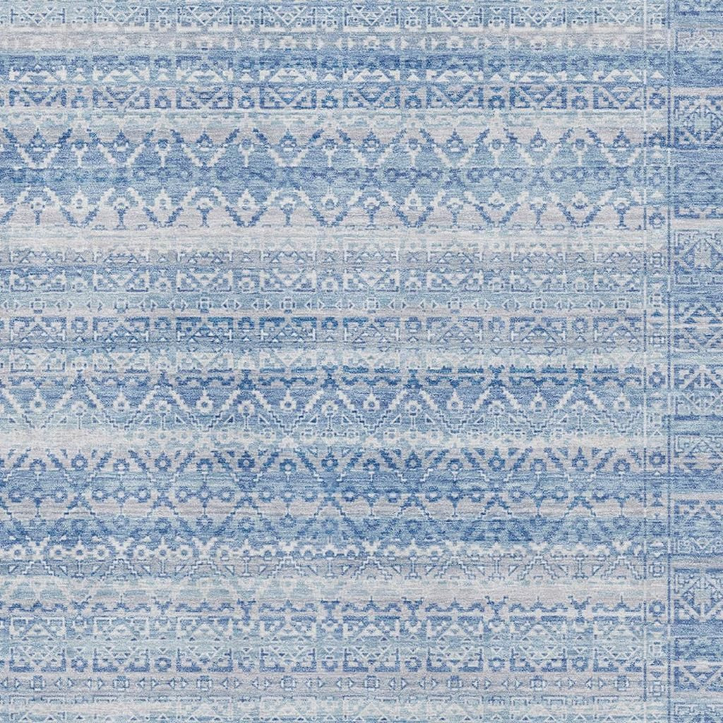 Set an inviting tone in your space with this 3-foot x 5-foot sky blue and ivory striped washable area rug with uv protection. Ideal for spaces with kids and pets, this rug is stain resistant to help repel dirt and spilled liquids. Built to last, this rug crafted from polyester fibers is known for its durability and long lasting appeal. Rugs are a great way to showcase your style, hide imperfections, warm your home and reduce noise. This smaller sized, transitional styled rug is just what you need for your walkway, bedside, in front of door, cabinet, refrigerator, or chair. 36.00-inch h x 60.00-inch w x 0.39-inch d.