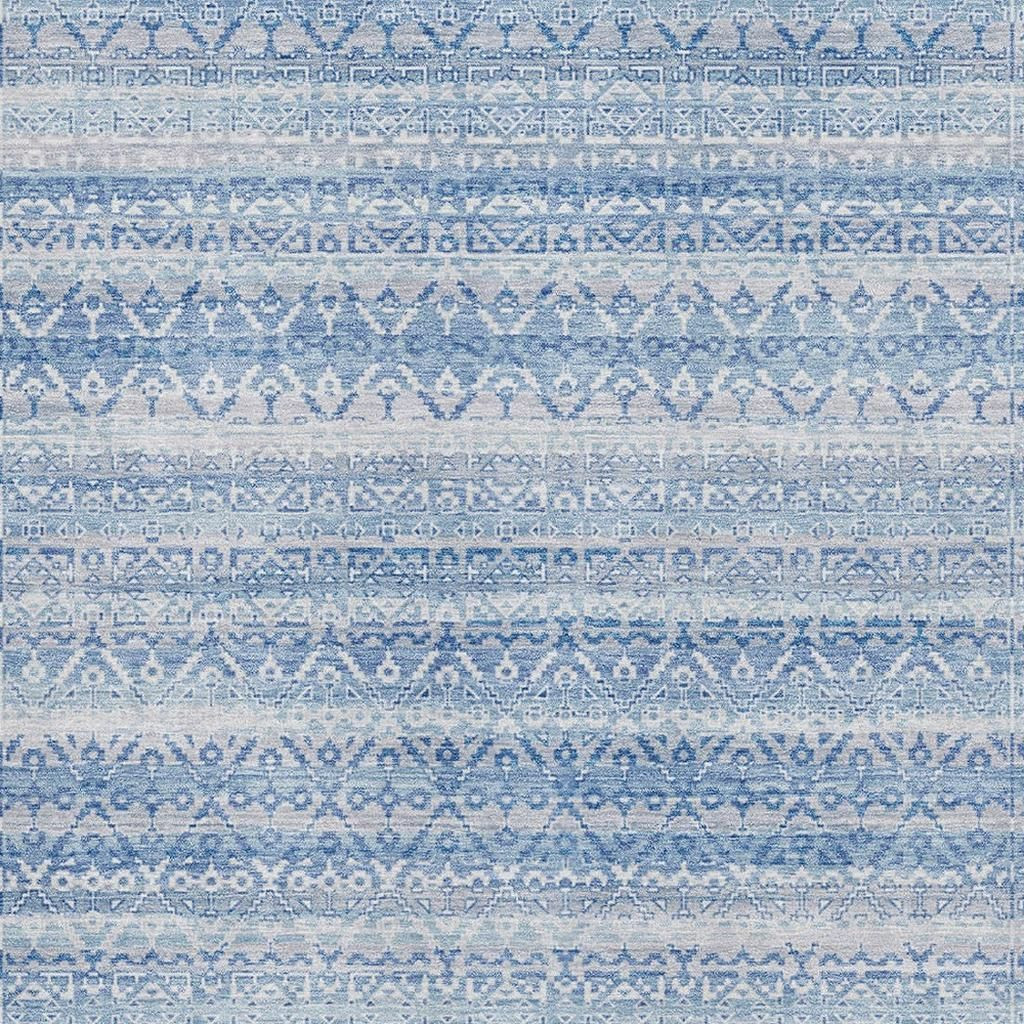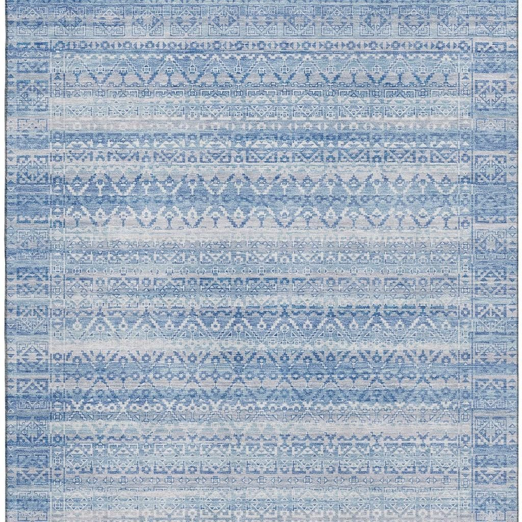 Add great coloration and comfortable texture to your space with this 5-foot x 8-foot sky blue and ivory striped washable area rug with uv protection. Ideal for spaces with kids and pets, this rug is stain resistant to help repel dirt and spilled liquids. Built to last, this rug crafted from polyester fibers is known for its durability and long lasting appeal. Rugs are a great way to showcase your style, hide imperfections, warm your home and reduce noise. This larger sized, transitional styled rug is ready to create a focal point or statement piece in your room. 60.00-inch h x 90.00-inch w x 0.39-inch d.