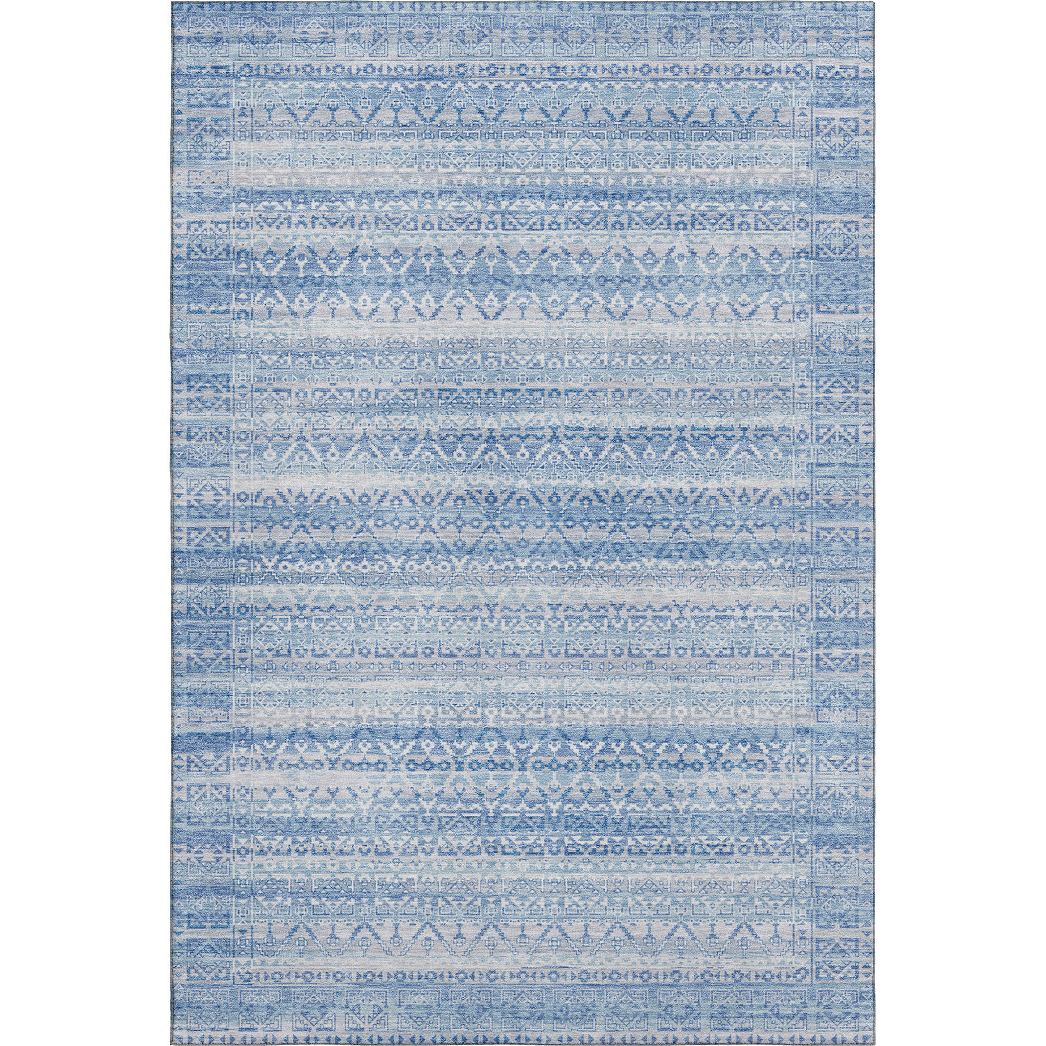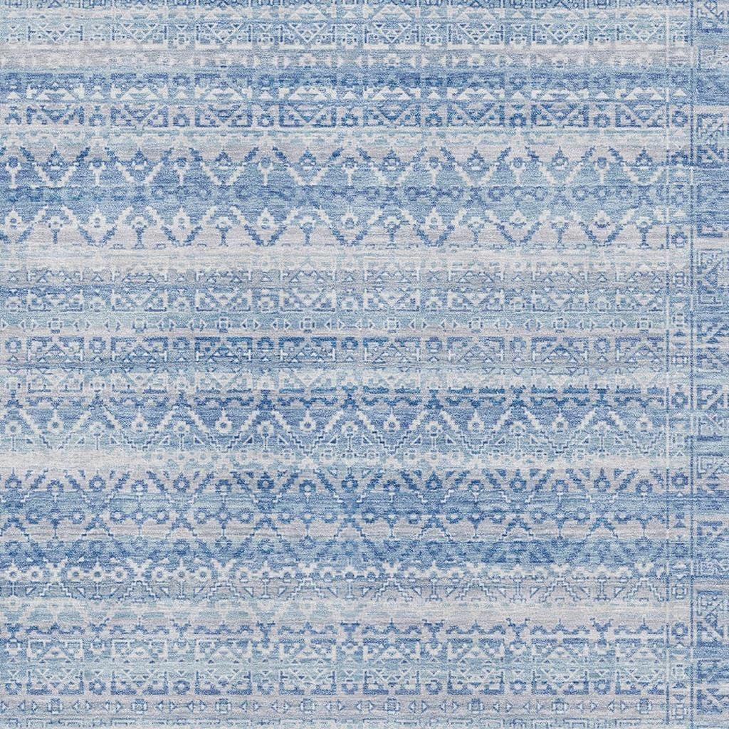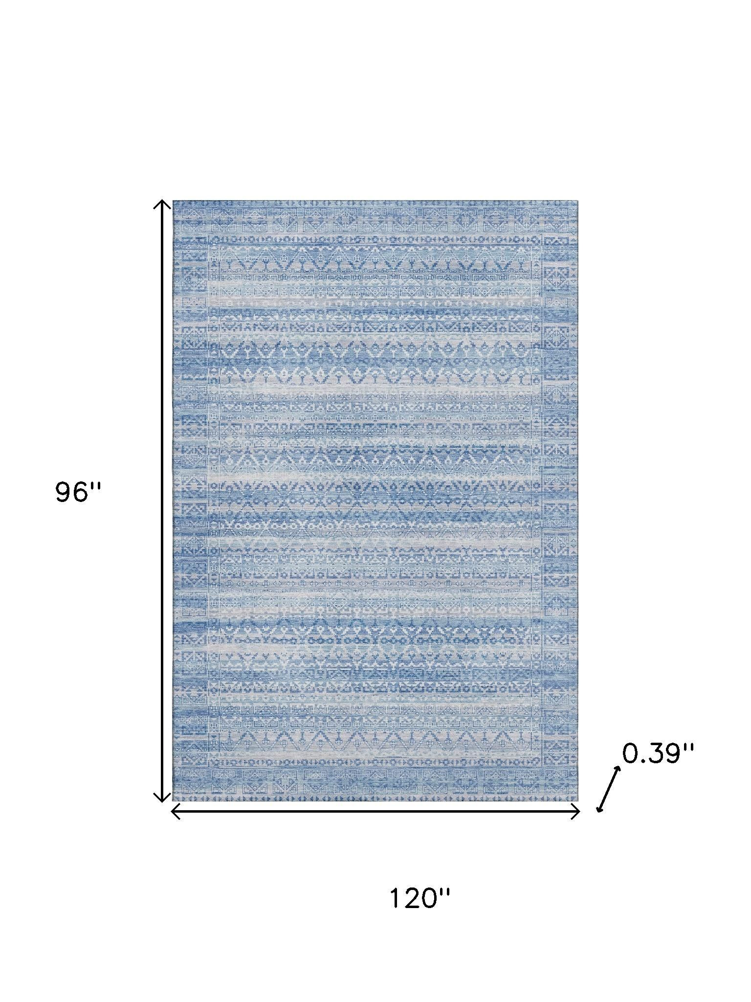 Add great coloration and comfortable texture to your space with this 8-foot x 10-foot sky blue and ivory striped washable area rug with uv protection. Ideal for spaces with kids and pets, this rug is stain resistant to help repel dirt and spilled liquids. Built to last, this rug crafted from polyester fibers is known for its durability and long lasting appeal. Rugs are a great way to showcase your style, hide imperfections, warm your home and reduce noise. This larger sized, transitional styled rug is ready to create a focal point or statement piece in your room. 96.00-inch h x 120.00-inch w x 0.39-inch d.