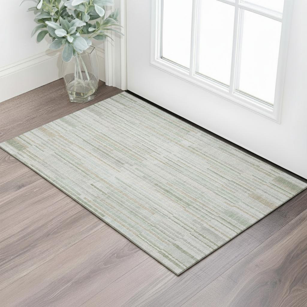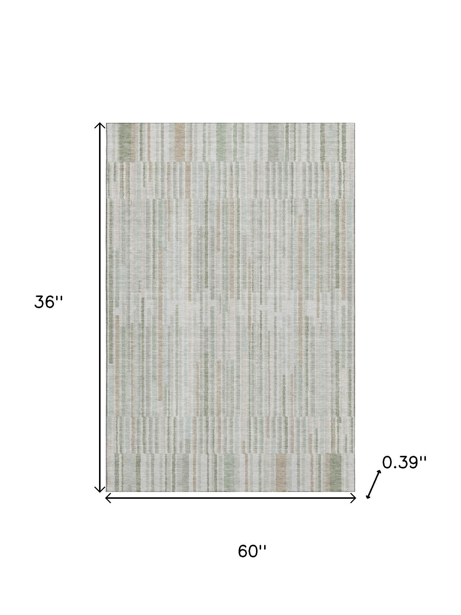 This 3-foot x 5-foot sage and ivory striped washable area rug with uv protection, is a great way to add warmth to a room. Ideal for spaces with kids and pets, this rug is stain resistant to help repel dirt and spilled liquids. Built to last, this rug crafted from polyester fibers is known for its durability and long lasting appeal. Rugs are a great way to showcase your style, hide imperfections, warm your home and reduce noise. This smaller sized, transitional styled rug is just what you need for your walkway, bedside, in front of door, cabinet, refrigerator, or chair. 36.00-inch h x 60.00-inch w x 0.39-inch d.