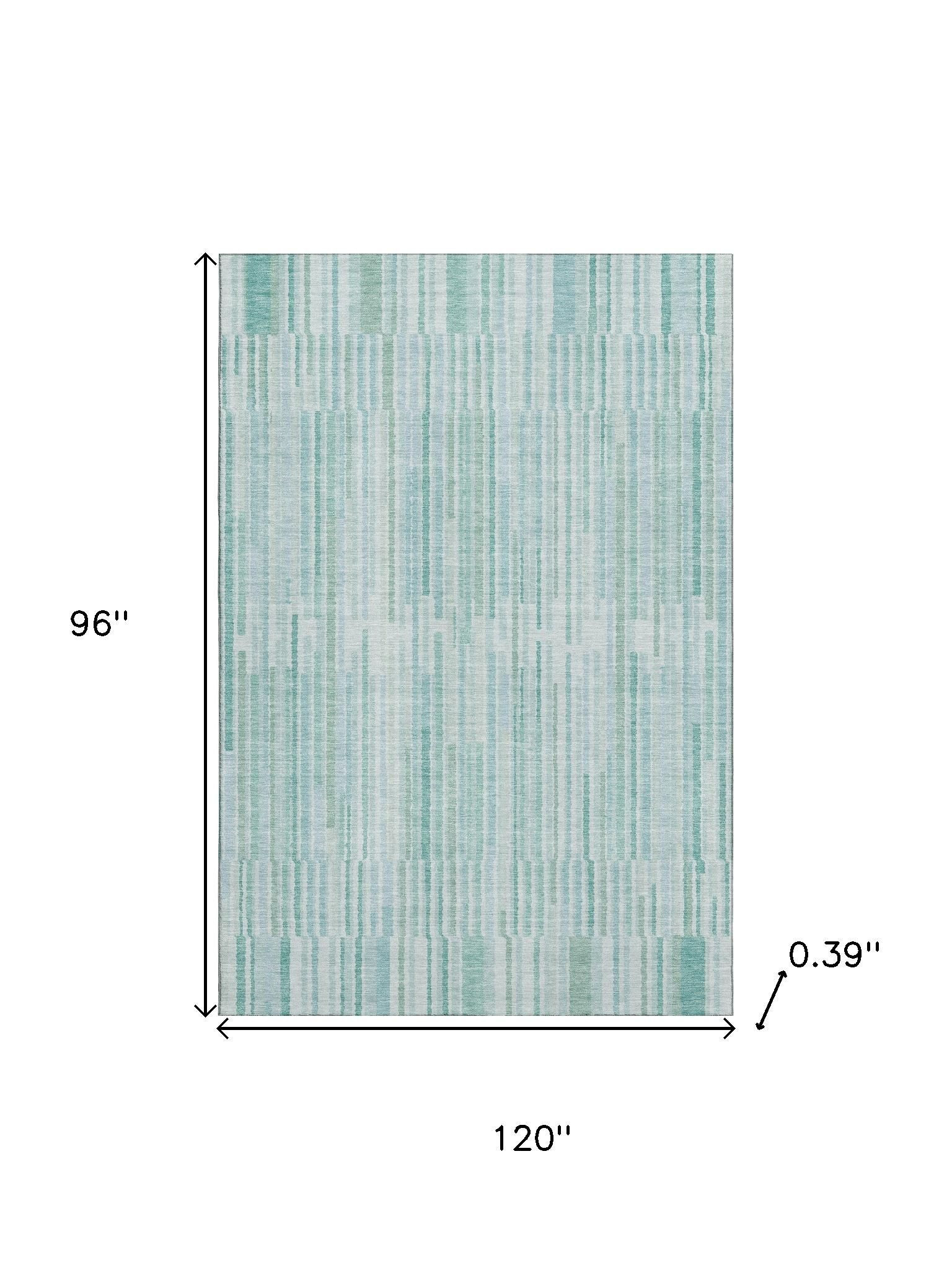 Set an inviting tone in your space with this 8-foot x 10-foot turquoise and sky blue striped washable area rug with uv protection. Ideal for spaces with kids and pets, this rug is stain resistant to help repel dirt and spilled liquids. Built to last, this rug crafted from polyester fibers is known for its durability and long lasting appeal. Rugs are a great way to showcase your style, hide imperfections, warm your home and reduce noise. This larger sized, transitional styled rug is ready to create a focal point or statement piece in your room. 96.00-inch h x 120.00-inch w x 0.39-inch d.