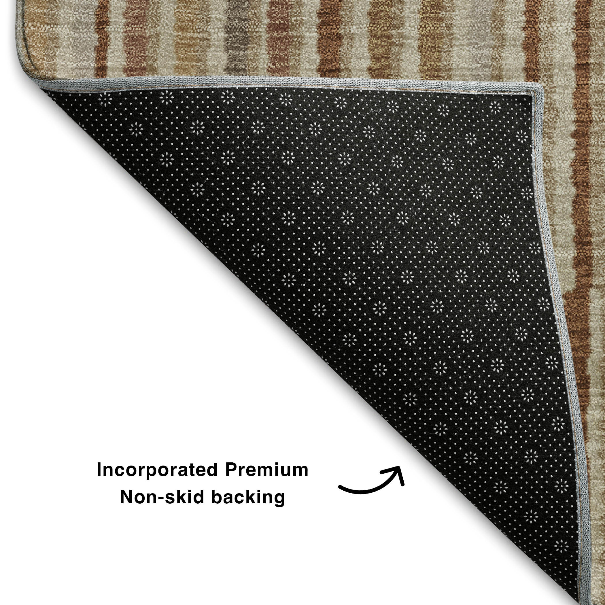 Add some artistry to your room with this 10-foot x 14-foot terra cotta and beige striped washable area rug with uv protection. Ideal for spaces with kids and pets, this rug is stain resistant to help repel dirt and spilled liquids. Built to last, this rug crafted from polyester fibers is known for its durability and long lasting appeal. Rugs are a great way to showcase your style, hide imperfections, warm your home and reduce noise. This larger sized, transitional styled rug is ready to create a focal point or statement piece in your room. 120.00-inch h x 168.00-inch w x 0.39-inch d.