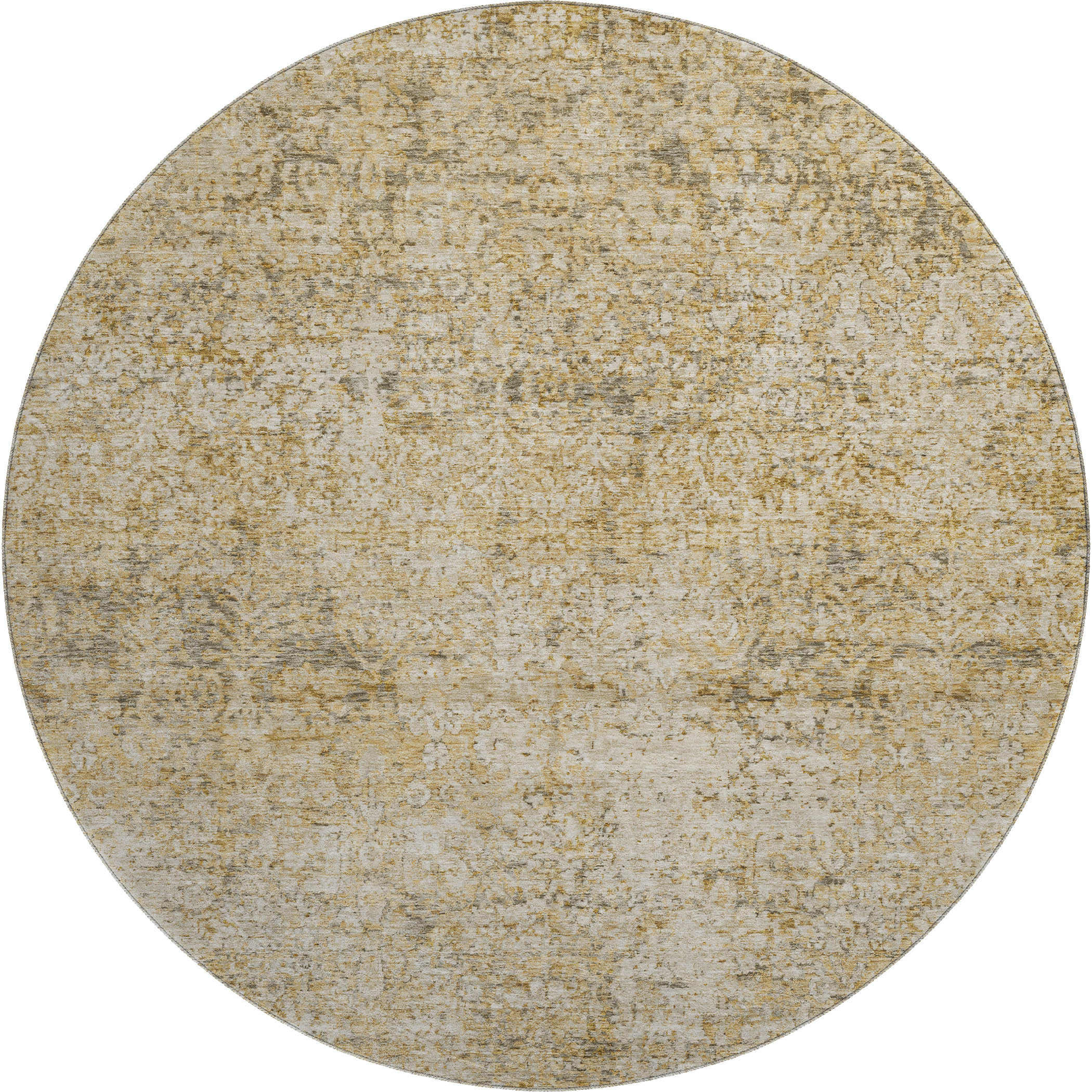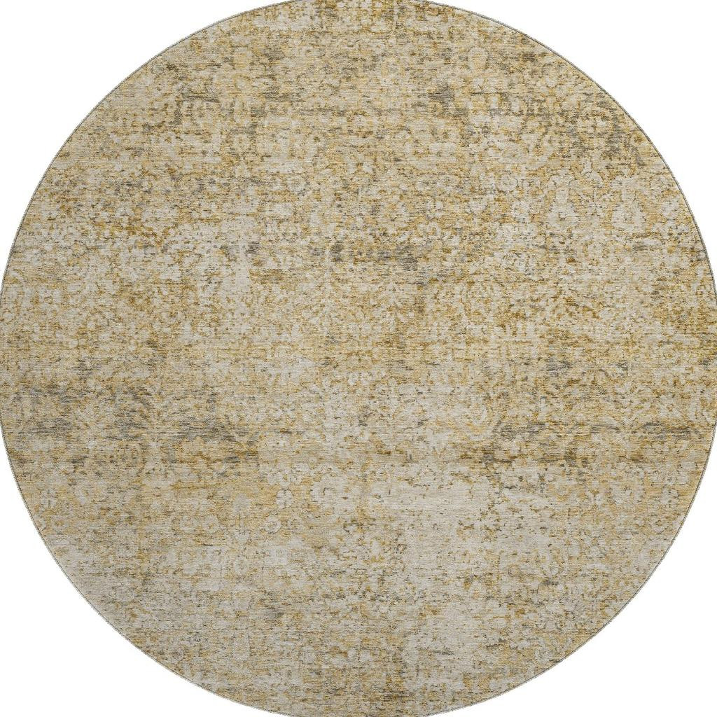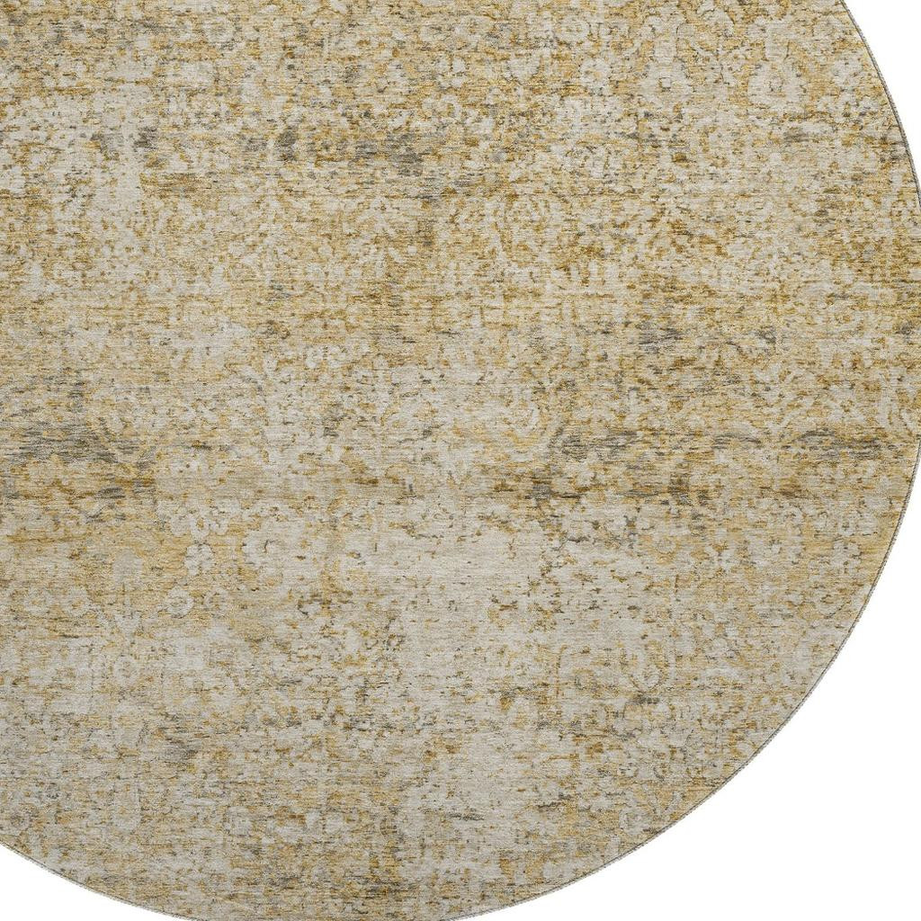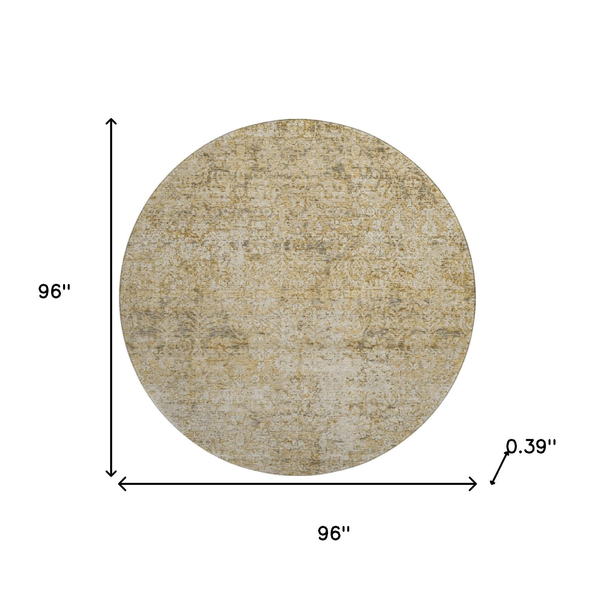 Set an inviting tone in your space with this 8-foot copper and beige abstract washable round rug with uv protection. Ideal for spaces with kids and pets, this rug is stain resistant to help repel dirt and spilled liquids. Built to last, this rug crafted from polyester fibers is known for its durability and long lasting appeal. Rugs are a great way to showcase your style, hide imperfections, warm your home and reduce noise. This larger sized, traditional styled rug is ready to create a focal point or statement piece in your room. 96.00-inch h x 96.00-inch w x 0.39-inch d.