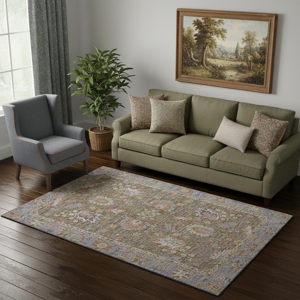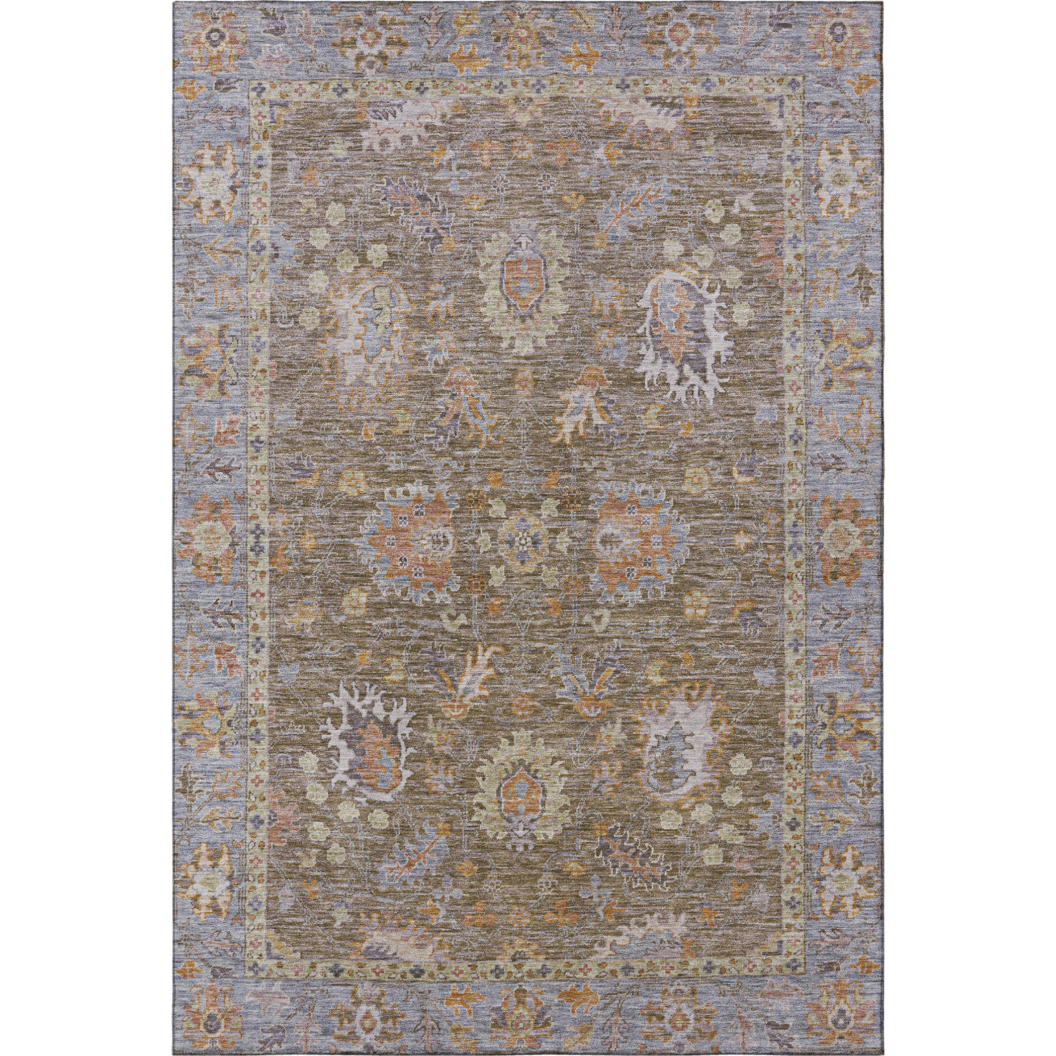 Set an inviting tone in your space with this 5-foot x 8-foot brown and lavender oriental washable area rug with uv protection. Ideal for spaces with kids and pets, this rug is stain resistant to help repel dirt and spilled liquids. Built to last, this rug crafted from polyester fibers is known for its durability and long lasting appeal. Rugs are a great way to showcase your style, hide imperfections, warm your home and reduce noise. This larger sized, traditional styled rug is ready to create a focal point or statement piece in your room. 60.00-inch h x 90.00-inch w x 0.39-inch d.