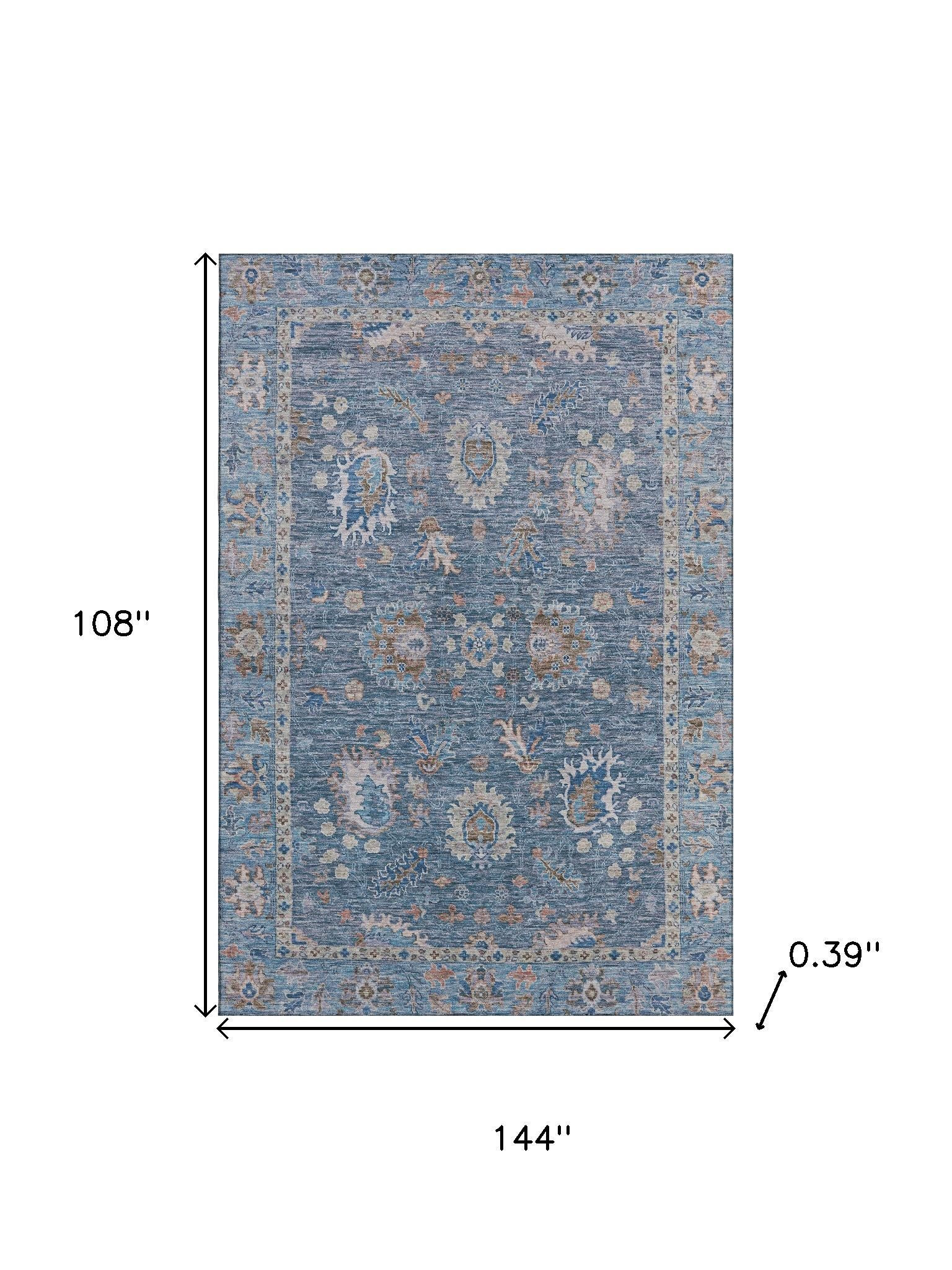 Add great coloration and comfortable texture to your space with this 9-foot x 12-foot blue and taupe oriental washable area rug with uv protection. Ideal for spaces with kids and pets, this rug is stain resistant to help repel dirt and spilled liquids. Built to last, this rug crafted from polyester fibers is known for its durability and long lasting appeal. Rugs are a great way to showcase your style, hide imperfections, warm your home and reduce noise. This larger sized, traditional styled rug is ready to create a focal point or statement piece in your room. 108.00-inch h x 144.00-inch w x 0.39-inch d.