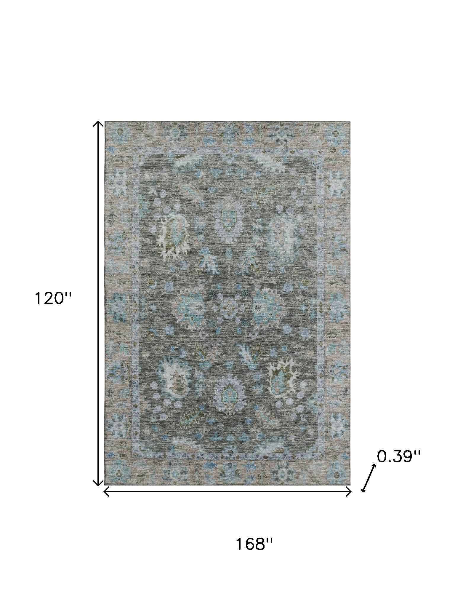 Set an inviting tone in your space with this 10-foot x 14-foot fern green and denim blue oriental washable area rug with uv protection. Ideal for spaces with kids and pets, this rug is stain resistant to help repel dirt and spilled liquids. Built to last, this rug crafted from polyester fibers is known for its durability and long lasting appeal. Rugs are a great way to showcase your style, hide imperfections, warm your home and reduce noise. This larger sized, traditional styled rug is ready to create a focal point or statement piece in your room. 120.00-inch h x 168.00-inch w x 0.39-inch d.