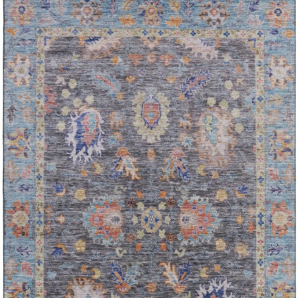 This 5-foot x 8-foot gray and copper oriental washable area rug with uv protection, is a great way to add warmth to a room. Ideal for spaces with kids and pets, this rug is stain resistant to help repel dirt and spilled liquids. Built to last, this rug crafted from polyester fibers is known for its durability and long lasting appeal. Rugs are a great way to showcase your style, hide imperfections, warm your home and reduce noise. This larger sized, traditional styled rug is ready to create a focal point or statement piece in your room. 60.00-inch h x 90.00-inch w x 0.39-inch d.