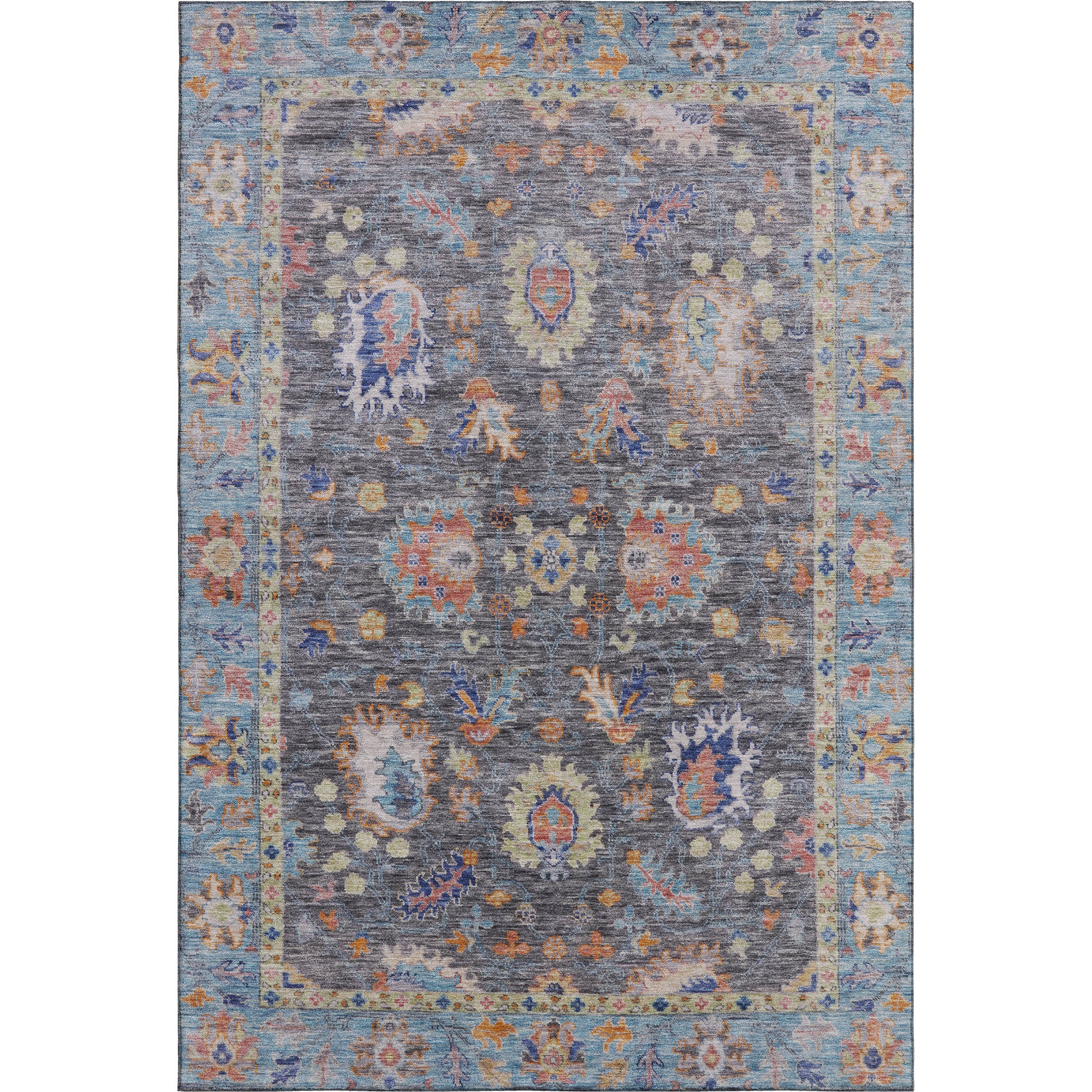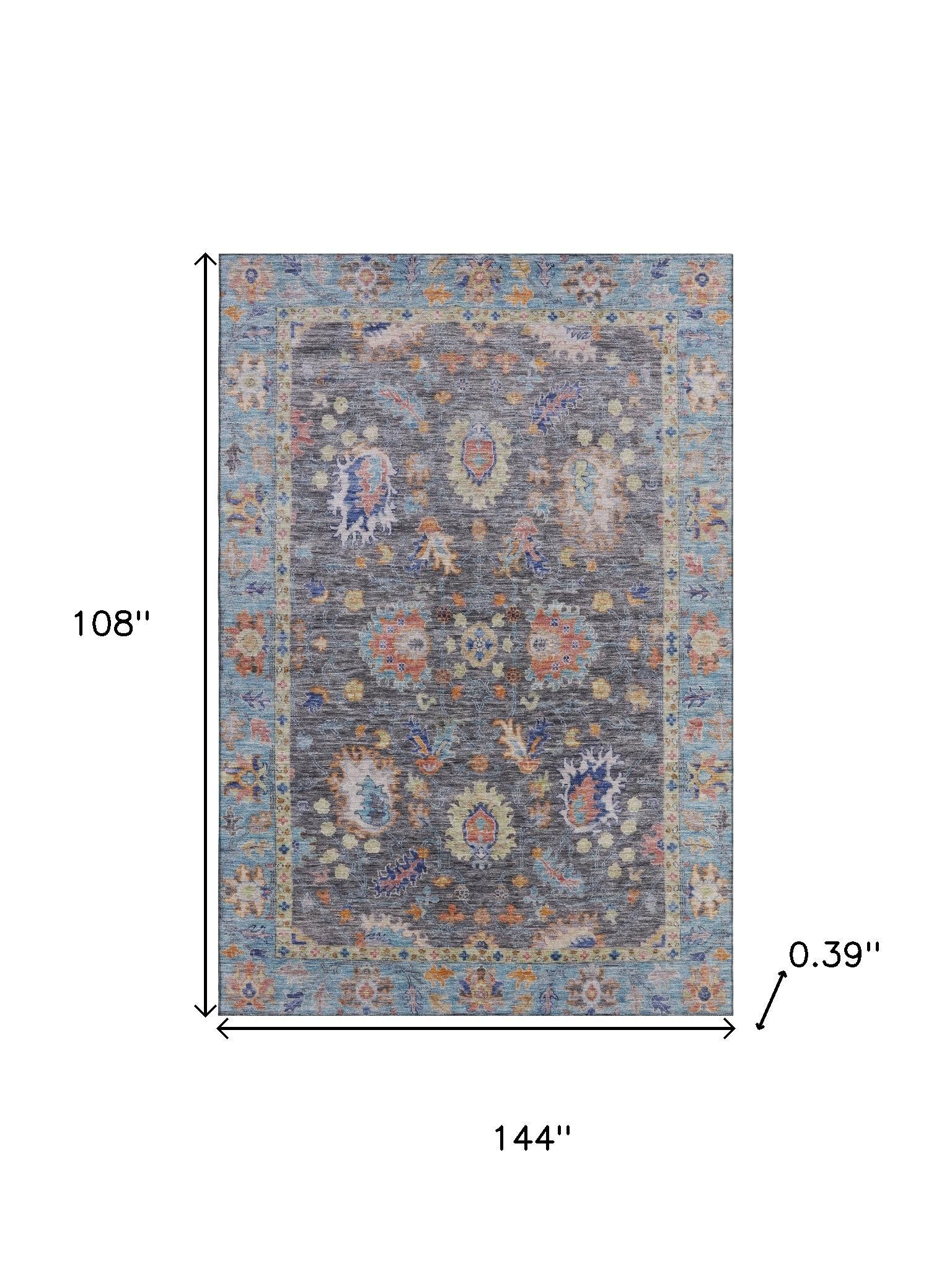 Add some artistry to your room with this 9-foot x 12-foot gray and copper oriental washable area rug with uv protection. Ideal for spaces with kids and pets, this rug is stain resistant to help repel dirt and spilled liquids. Built to last, this rug crafted from polyester fibers is known for its durability and long lasting appeal. Rugs are a great way to showcase your style, hide imperfections, warm your home and reduce noise. This larger sized, traditional styled rug is ready to create a focal point or statement piece in your room. 108.00-inch h x 144.00-inch w x 0.39-inch d.