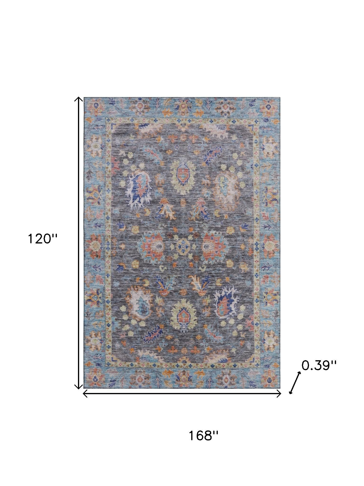This 10-foot x 14-foot gray and copper oriental washable area rug with uv protection, is a great way to add warmth to a room. Ideal for spaces with kids and pets, this rug is stain resistant to help repel dirt and spilled liquids. Built to last, this rug crafted from polyester fibers is known for its durability and long lasting appeal. Rugs are a great way to showcase your style, hide imperfections, warm your home and reduce noise. This larger sized, traditional styled rug is ready to create a focal point or statement piece in your room. 120.00-inch h x 168.00-inch w x 0.39-inch d.