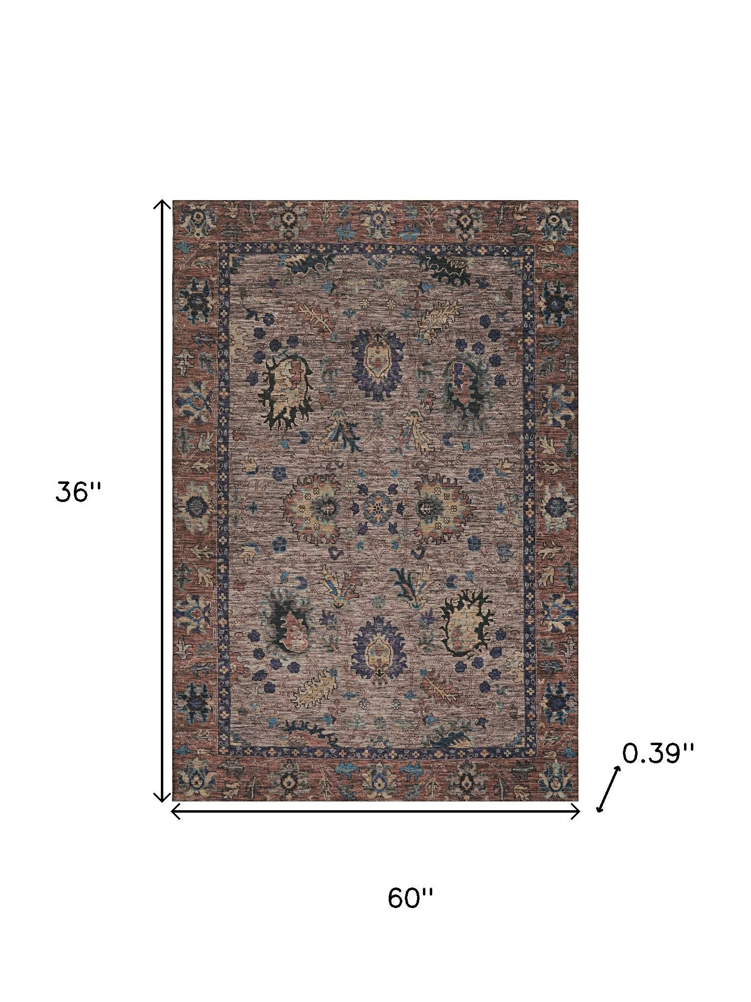 Add some artistry to your room with this 3-foot x 5-foot coffee and copper oriental washable area rug with uv protection. Ideal for spaces with kids and pets, this rug is stain resistant to help repel dirt and spilled liquids. Built to last, this rug crafted from polyester fibers is known for its durability and long lasting appeal. Rugs are a great way to showcase your style, hide imperfections, warm your home and reduce noise. This smaller sized, traditional styled rug is just what you need for your walkway, bedside, in front of door, cabinet, refrigerator, or chair. 36.00-inch h x 60.00-inch w x 0.39-inch d.