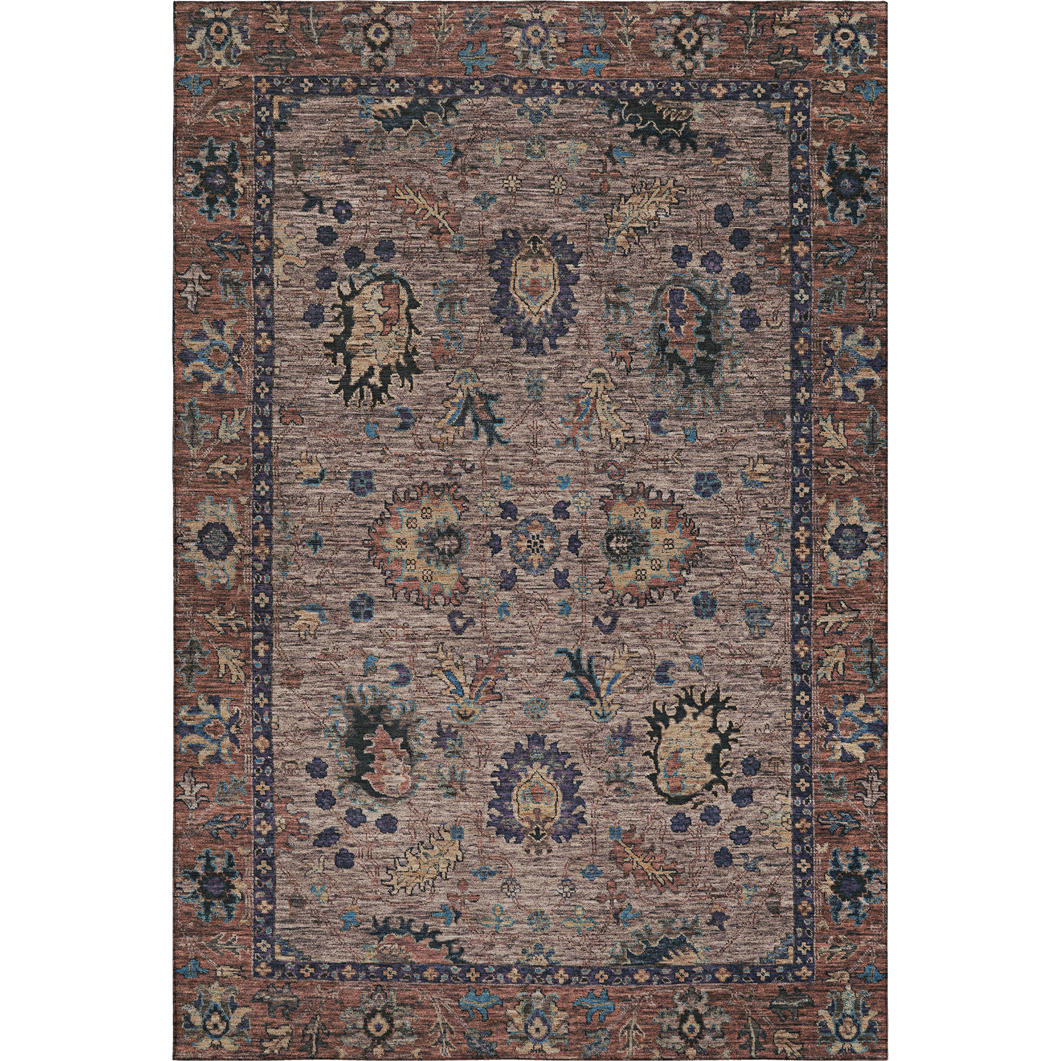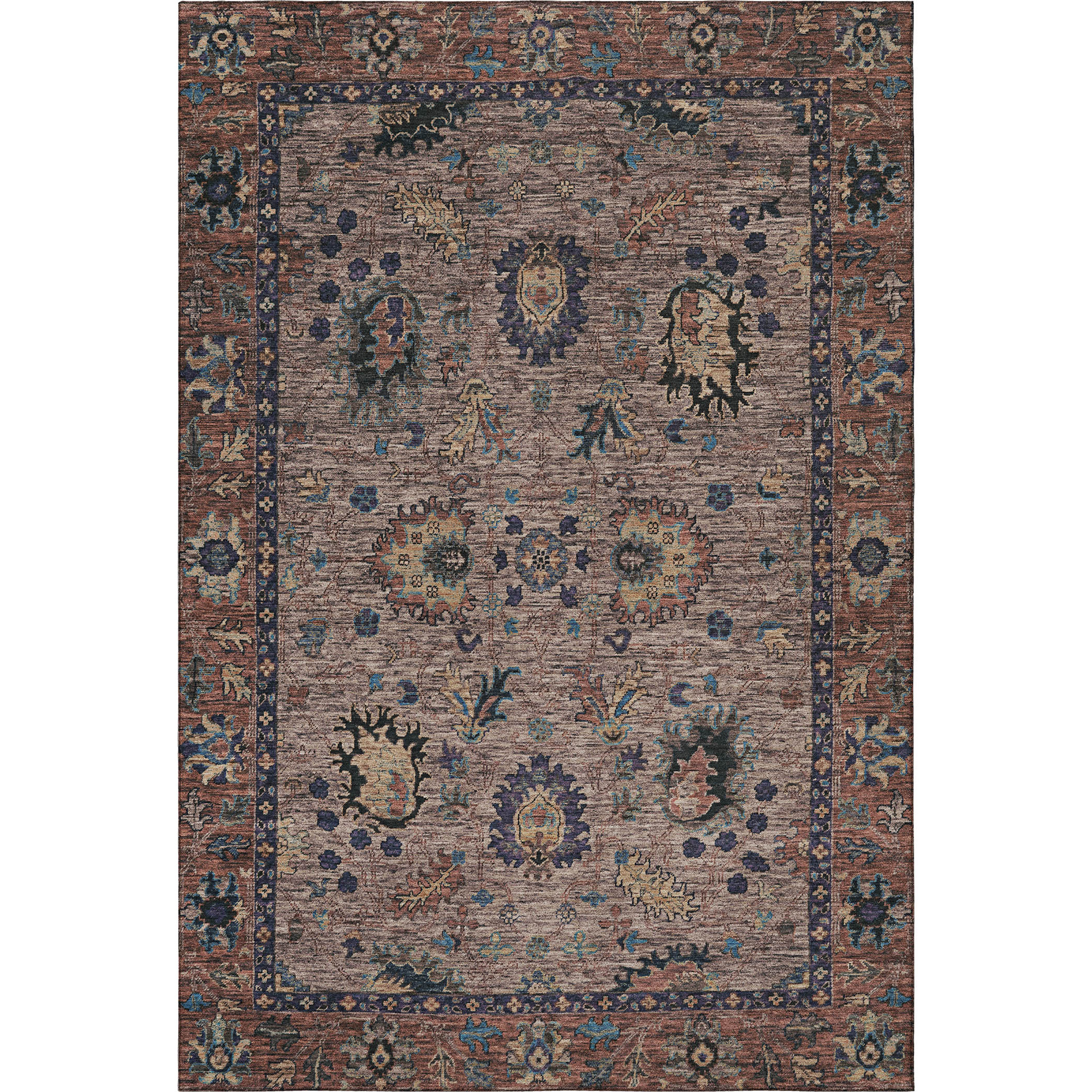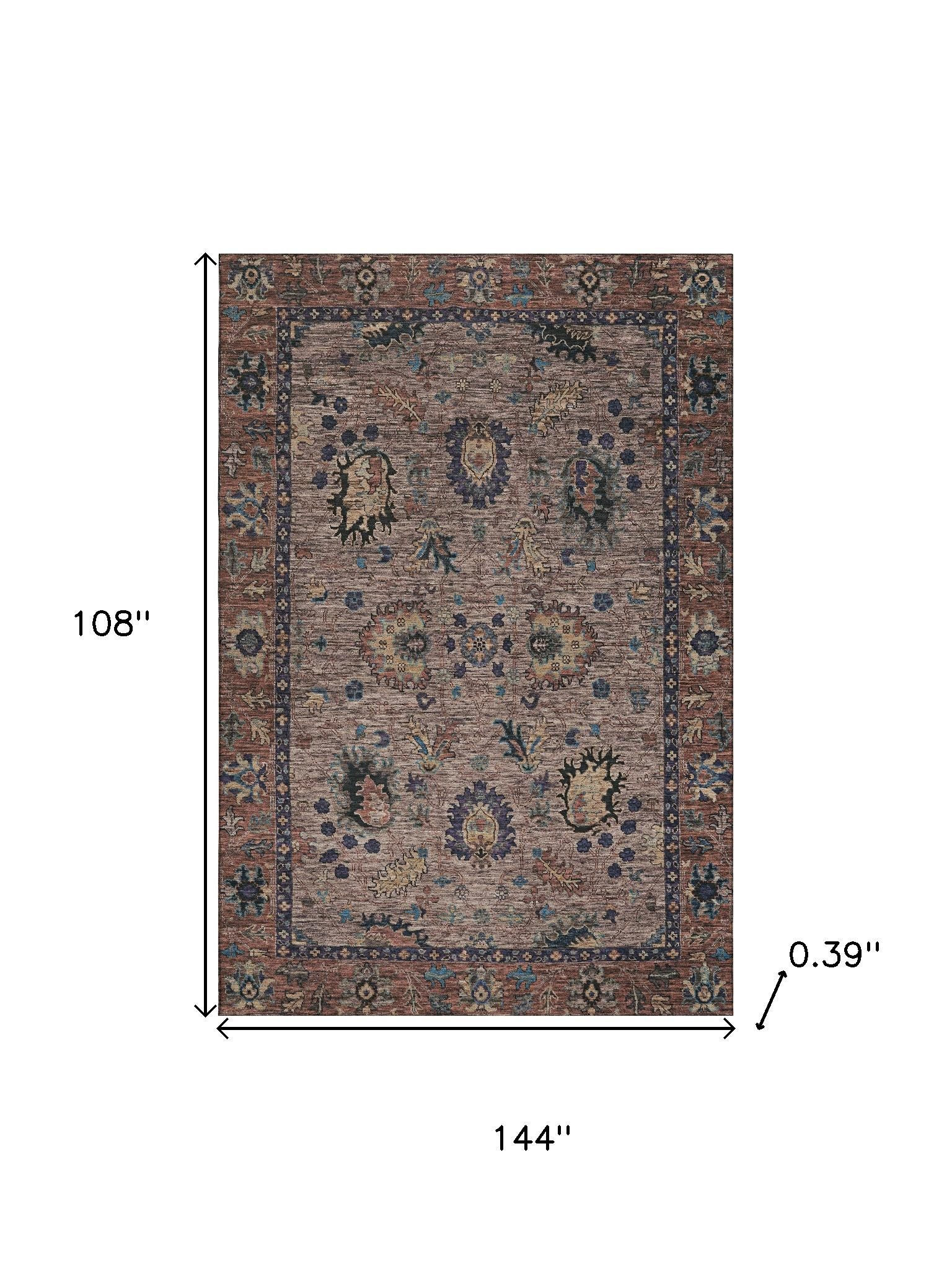 This 9-foot x 12-foot coffee and copper oriental washable area rug with uv protection, is a great way to add warmth to a room. Ideal for spaces with kids and pets, this rug is stain resistant to help repel dirt and spilled liquids. Built to last, this rug crafted from polyester fibers is known for its durability and long lasting appeal. Rugs are a great way to showcase your style, hide imperfections, warm your home and reduce noise. This larger sized, traditional styled rug is ready to create a focal point or statement piece in your room. 108.00-inch h x 144.00-inch w x 0.39-inch d.